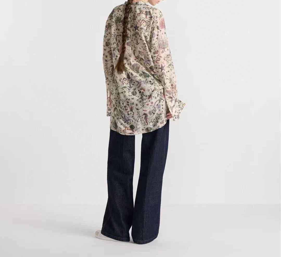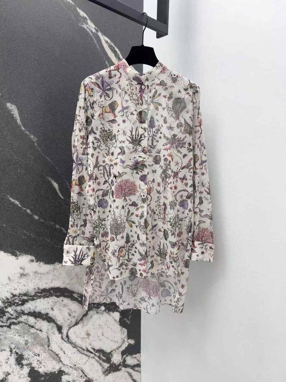 Рубашка-туника Christian Dior LUX-114079 представляет собой стильный предмет гардероба, сочетающий в себе элементы рубашки и туники. Дизайн изделия выполнен в светлых тонах с цветочным принтом, что придает образу женственность и легкость. Эта модель подходит для создания элегантных и повседневных образов.