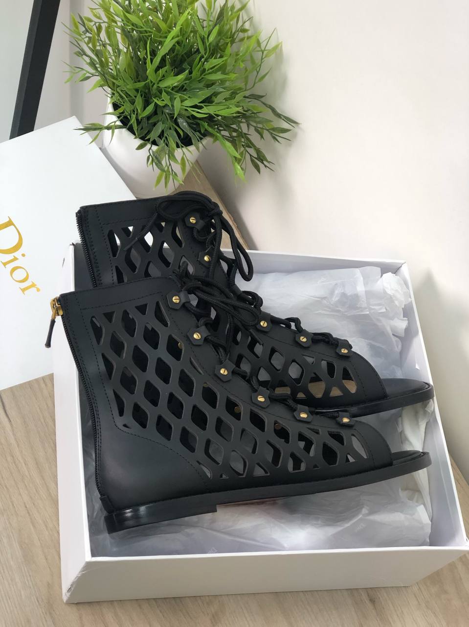 Эти изящные женские сандалии Christian Dior LUX-46151 от Christian Dior представляют собой стильное сочетание гладиаторского дизайна и элегантности. Черный цвет и ажурный узор делают их универсальным дополнением к летнему гардеробу, идеально подходящим для создания эффектных образов.