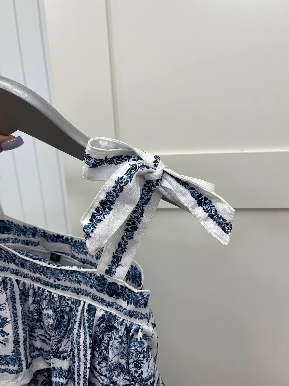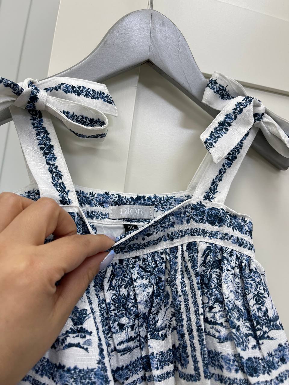 Сарафан Christian Dior LUX-88019 выполнен в романтическом стиле. Сарафан декорирован сине-белым принтом с цветочными мотивами. Отлично подойдёт для летних прогулок или отдыха.