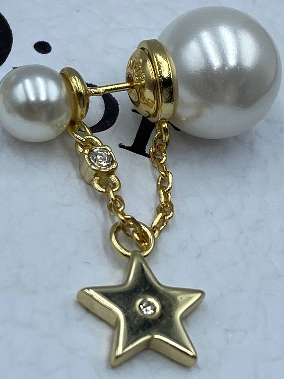 Серьги Christian Dior LUX-99447 — это изысканные серьги в виде гвоздиков. Они выполнены в элегантном стиле, с акцентом на сочетании жемчужин и подвесок в форме звезд. Серьги имеют золотистый оттенок и предназначены для придания особого шарма вашему образу.