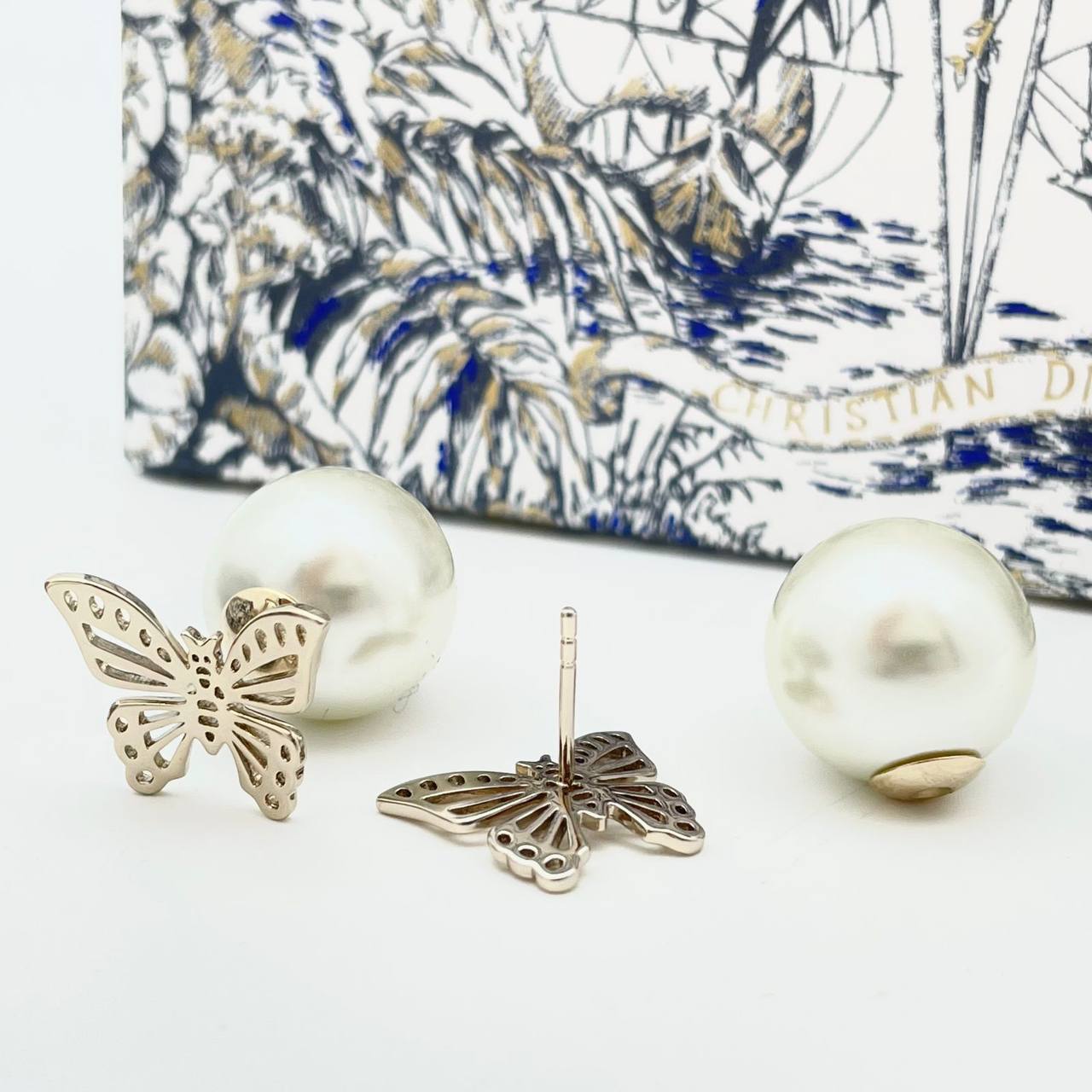 Серьги Christian Dior LUX-108061 — элегантное украшение, выполненное в изящном стиле. Серьги представляют собой сочетание золотистой фурнитуры в форме бабочки и жемчужной основы. Эти серьги станут прекрасным дополнением к любому наряду, придавая ему шарм и изысканность.