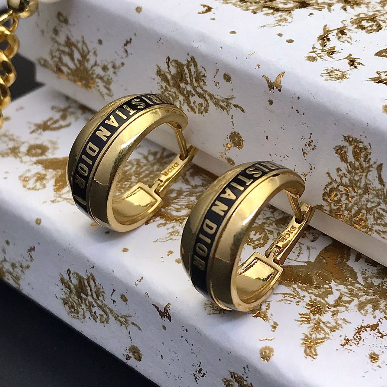 Серьги Christian Dior LUX-85213 - это элегантное украшение, выполненное в классическом стиле. Серьги имеют золотистый цвет с черными акцентами, создавая изысканный вид. Прекрасно подойдут для создания как повседневных, так и вечерних образов.