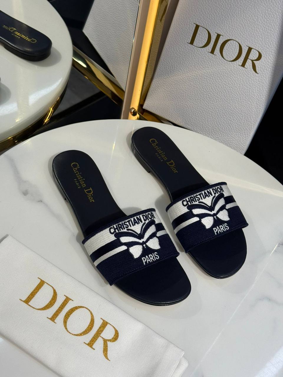 Шлепанцы Christian Dior LUX-120521 - элегантная модель для теплого времени года. Они сочетают в себе фирменный стиль Dior и комфорт, идеально подходят для повседневной носки.