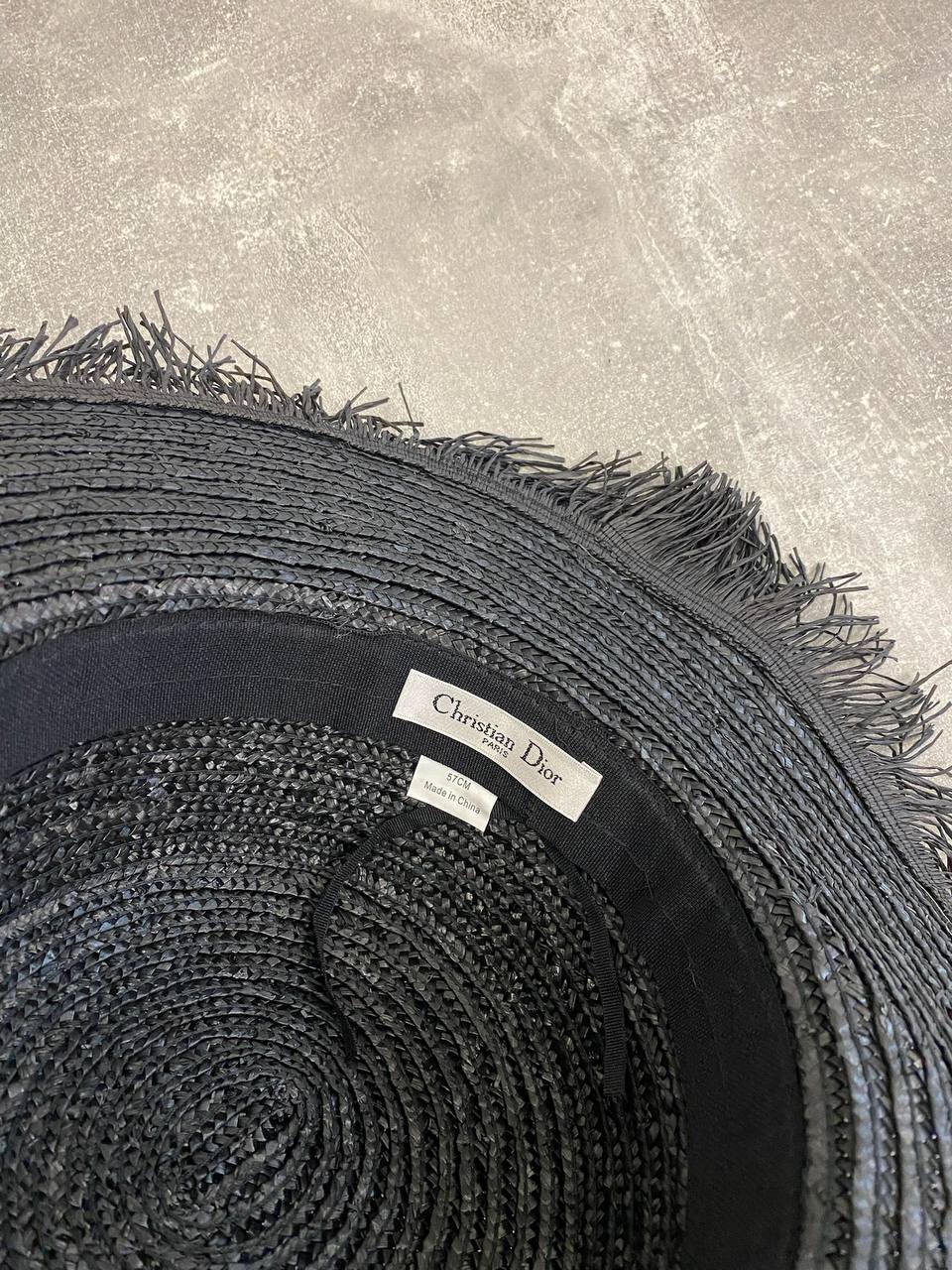 Шляпа Christian Dior LUX-106399 представляет собой стильный аксессуар в летнем стиле. Шляпа выполнена в черном цвете, с широкими полями и декоративной отделкой бахромой. На тулье расположена лента с надписью "CHRISTIAN DIOR PARIS".
