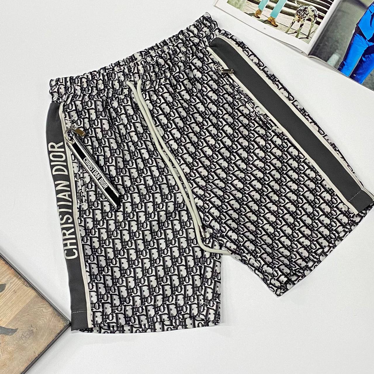 Шорты Christian Dior LUX-70307 выполнены в спортивном стиле с узнаваемым монохромным узором. Шорты имеют прямой крой с акцентными деталями в виде полос по бокам и лаконичных шнурков. Идеальный выбор для создания стильного летнего образа.