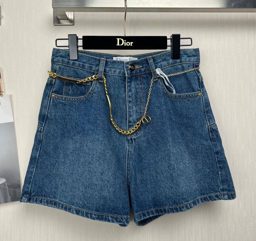 Шорты Christian Dior LUX-70607 — это стильная и удобная модель из денима. Шорты выполнены в классическом синем цвете, который дополняется золотой цепочкой на поясе. Отлично подойдут для создания повседневных образов.