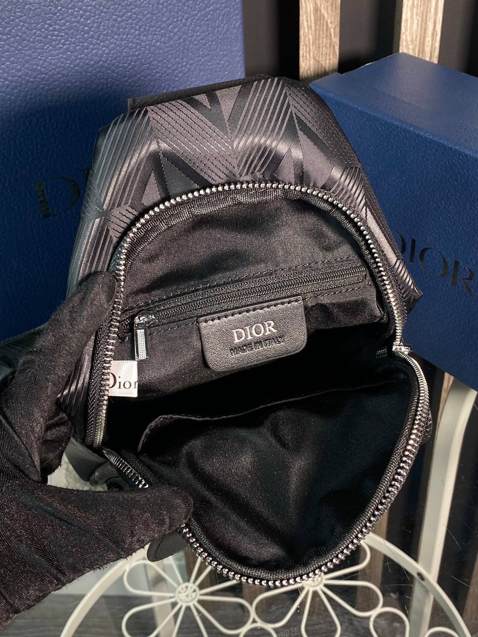 Слинг Christian Dior LUX-108520 — это стильный и практичный аксессуар, который сочетает в себе элегантность и функциональность. Черный цвет, текстурированный узор и металлические детали придают ему современный вид. Идеален для повседневного использования, дополняя как кэжуал, так и более формальные образы.
