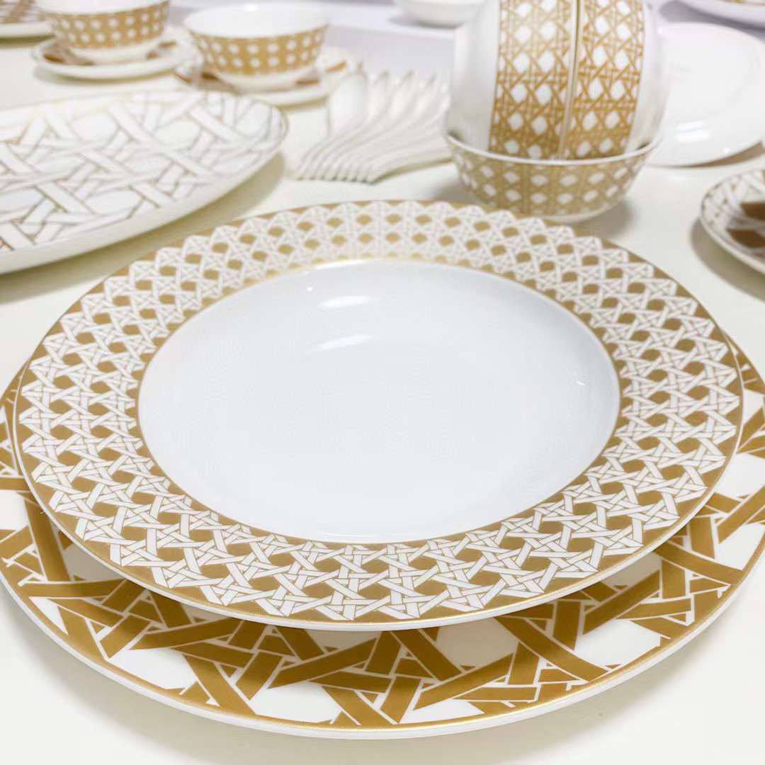 Столовый сервиз 41 предмет Christian Dior LUX-94687 — это изысканный набор посуды, представляющий собой воплощение роскоши и элегантности. Он выполнен в фирменном стиле Christian Dior, где преобладают золотистые узоры на белом фоне. Этот сервиз станет прекрасным дополнением к любому праздничному столу или изысканному обеду.
