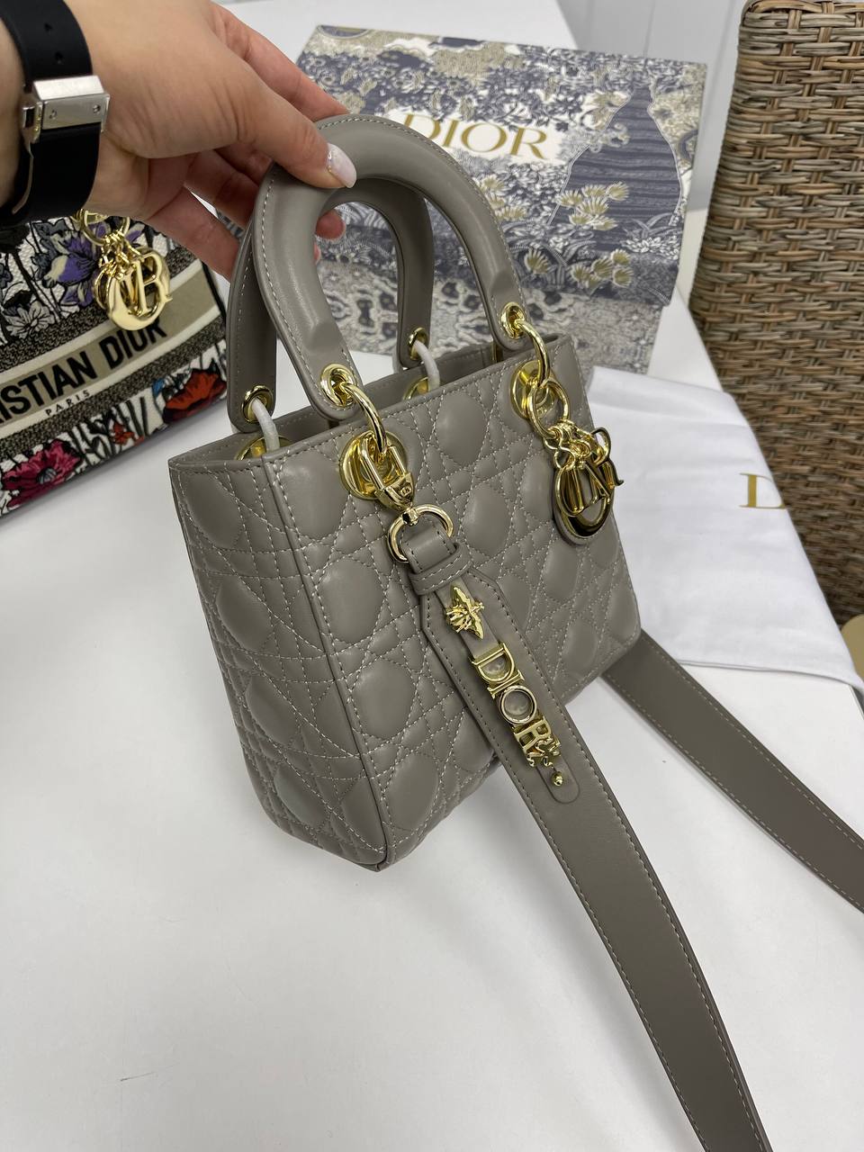 Сумка женская 20 см Christian Dior LUX-86805 выполнена в классическом стиле, придающем образу элегантность. Серо-бежевый цвет сумки гармонично сочетается с различными нарядами. Она предназначена для повседневного использования, а также для особых случаев.
