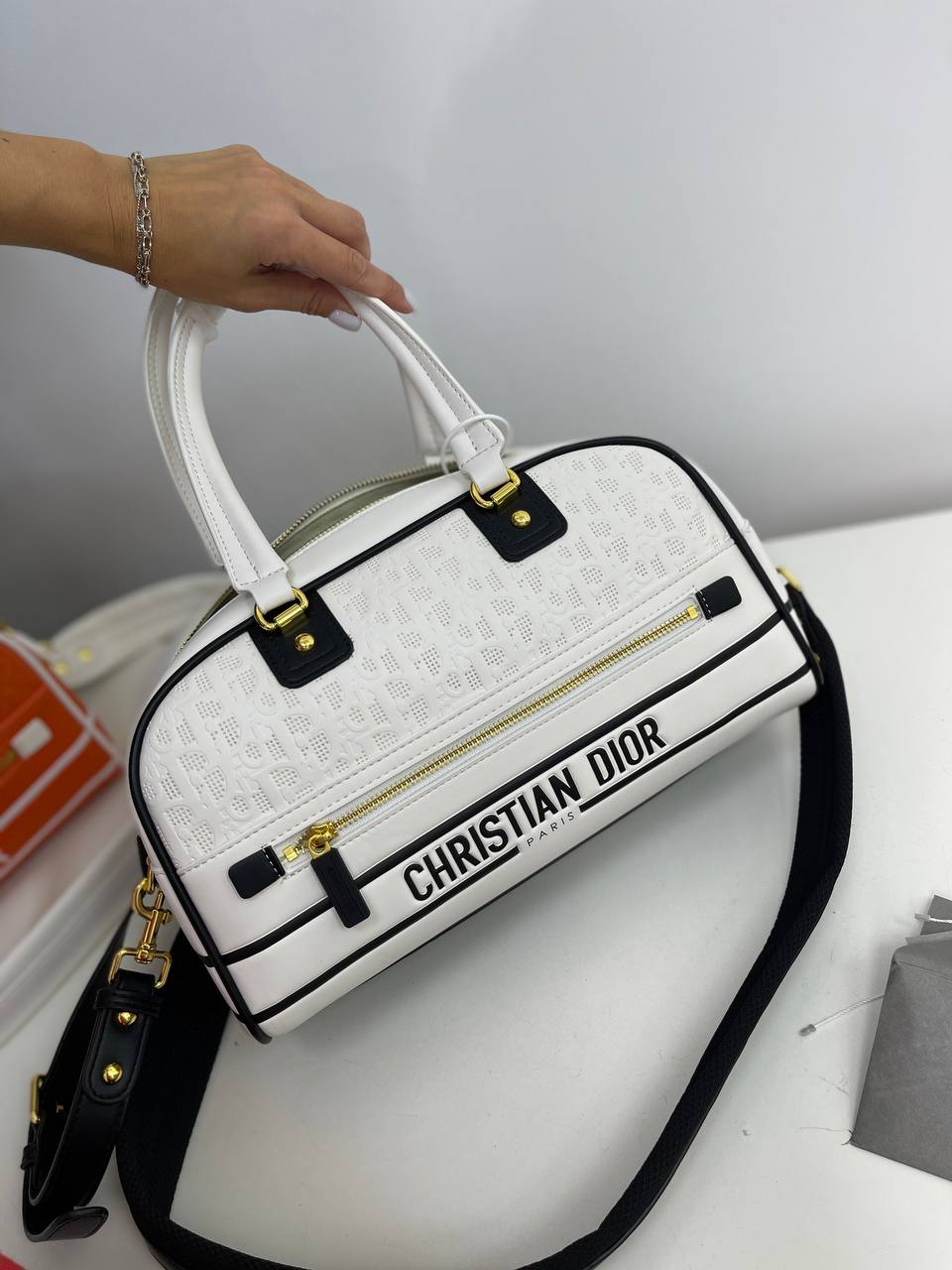 Сумка женская Christian Dior LUX-73906 - это воплощение элегантности и стиля. Сумка выполнена в классическом дизайне, в белом цвете с черными и золотыми элементами. Она идеально подходит для создания утонченного образа, подчеркивая индивидуальность своей обладательницы.