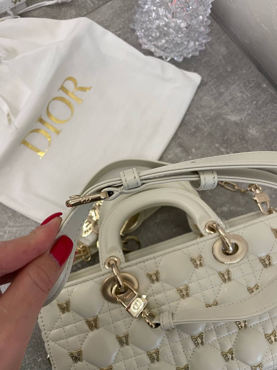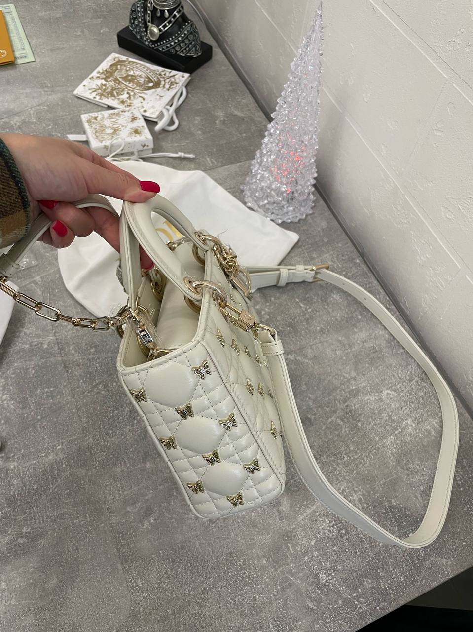 Сумка женская Christian Dior LUX-99821 представляет собой элегантный аксессуар в стиле casual. Сумка выполнена в белом цвете с декоративными элементами в виде бабочек и фурнитурой золотистого оттенка. Прямоугольная форма сумки и стеганая текстура добавляют ей изысканности.