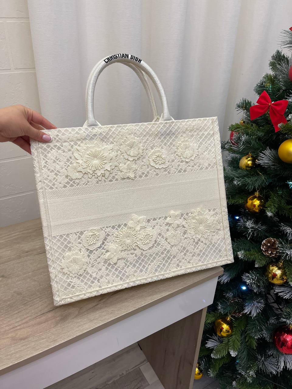 Сумка женская Christian Dior LUX-99977 — это элегантный аксессуар, выполненный в светлых тонах с изысканным дизайном. Сумка имеет прямоугольную форму и декорирована кружевными элементами с цветочным узором. Она станет прекрасным дополнением к повседневному или вечернему образу.