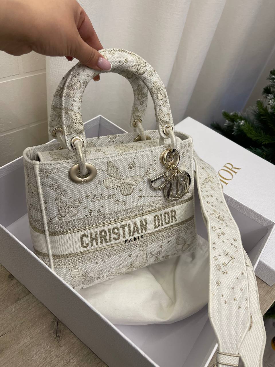 Женская сумка Christian Dior LUX-100606 — это элегантный аксессуар, выполненный в узнаваемом стиле бренда. Сумка выполнена в светлом оттенке с узором, а также имеет съемный ремень. Эта сумка станет прекрасным дополнением к любому образу.