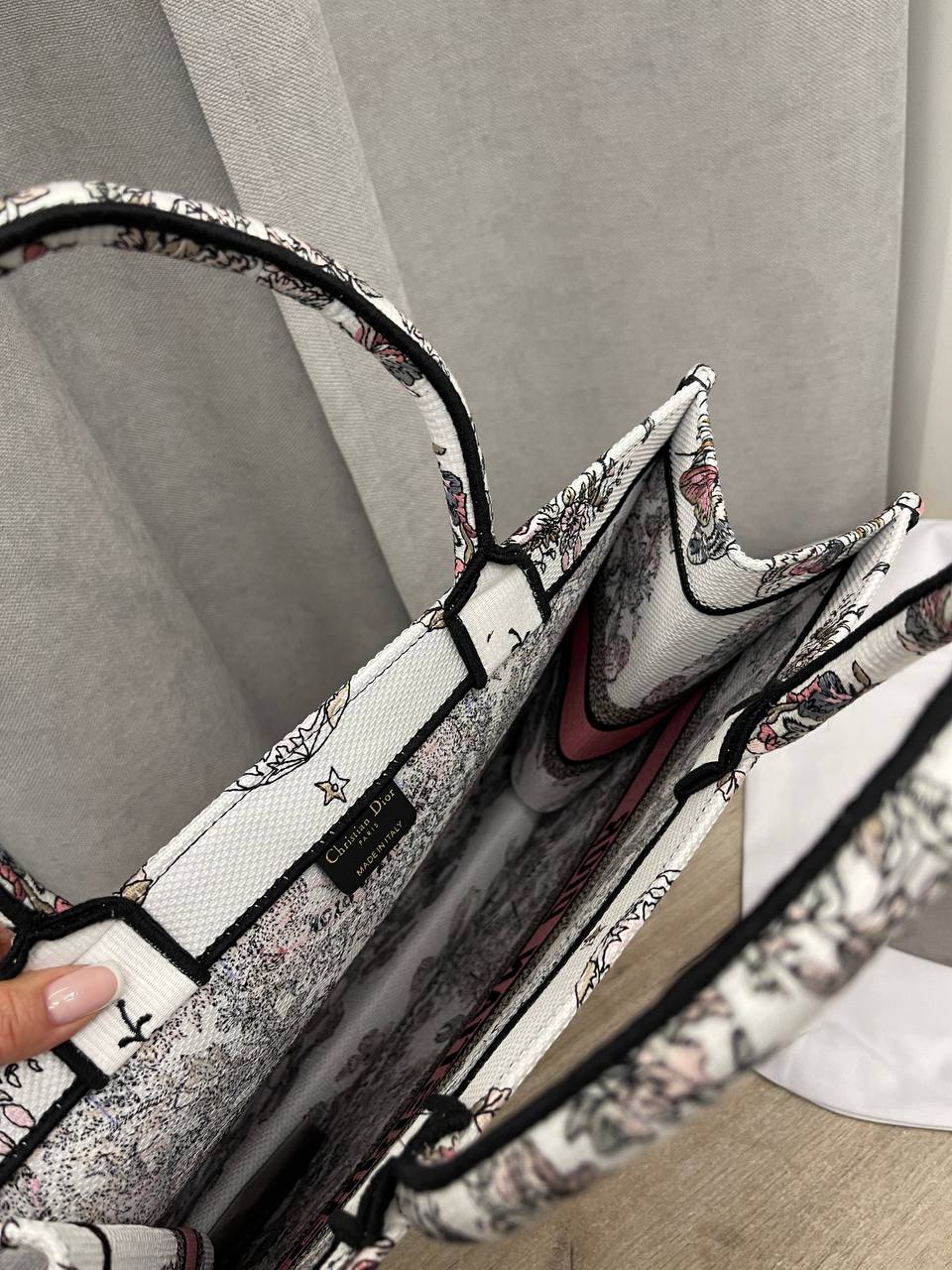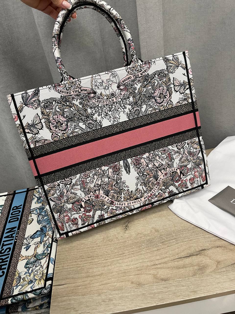 Сумка женская 42 см Christian Dior LUX-101493 – элегантная сумка-тоут от известного бренда. Основным цветом сумки является белый с принтом в виде цветов и узоров, а также розовой полосой с надписью бренда. Эта сумка идеально подойдет для повседневного использования, подчеркивая индивидуальность и стиль.