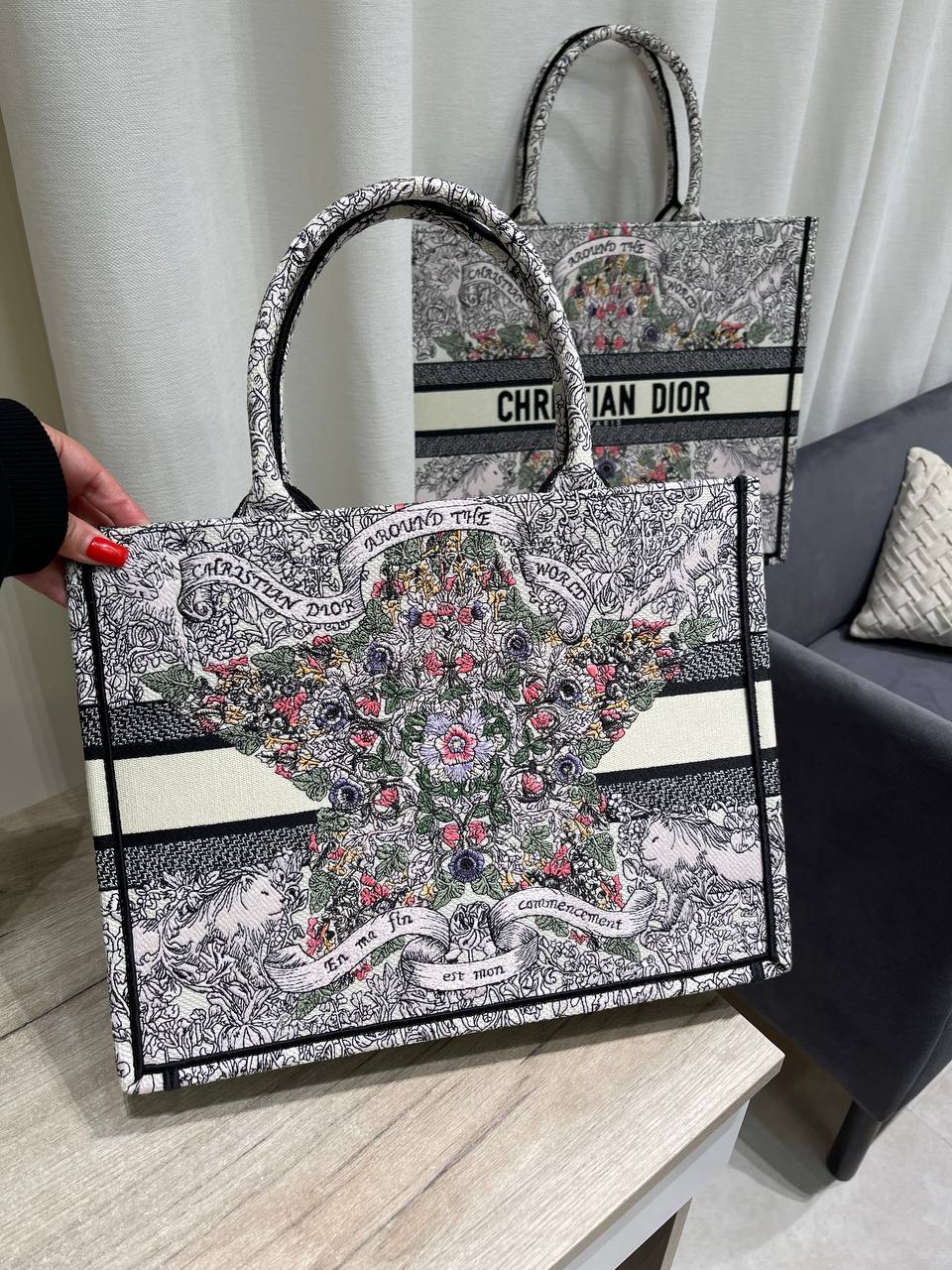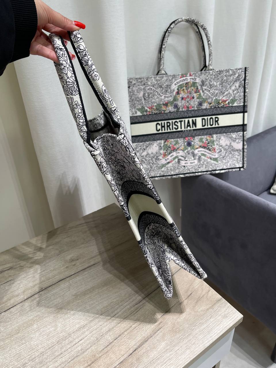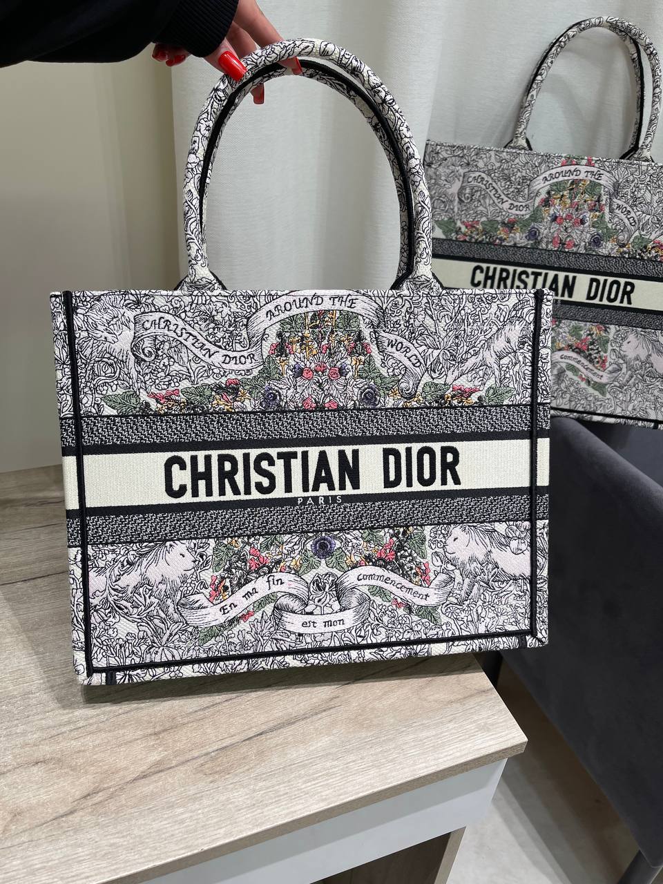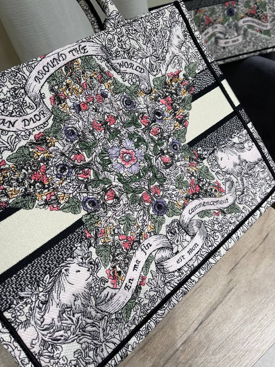 Сумка женская 36 см Christian Dior LUX-118770 - это элегантный аксессуар, который подчеркнет ваш стиль. Сумка выполнена в светлых тонах с красочным принтом, украшенным надписями и изображениями, что делает ее уникальной. Она подойдет для повседневного использования, а также для особых случаев.