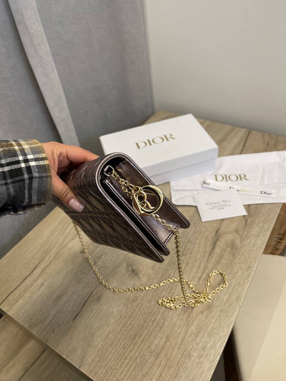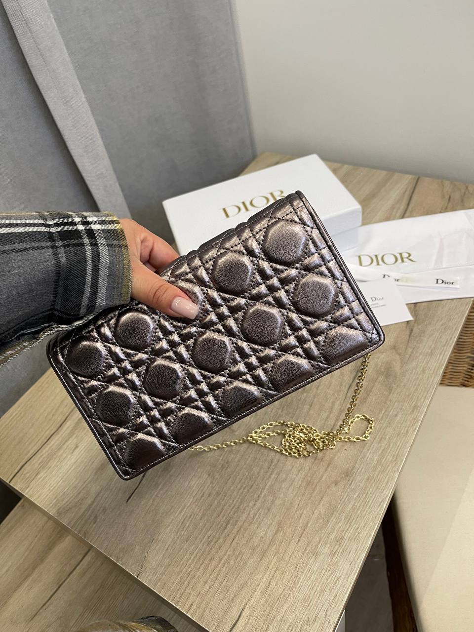 Сумка женская Christian Dior LUX-107168 - это изысканный аксессуар, сочетающий в себе элегантность и функциональность. Сумка выполнена в серебристо-сером оттенке, имеет стеганый дизайн и украшена декоративными элементами. Этот клатч идеально подходит для создания завершенного образа.