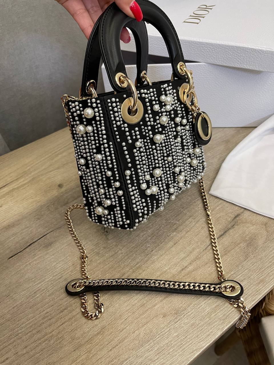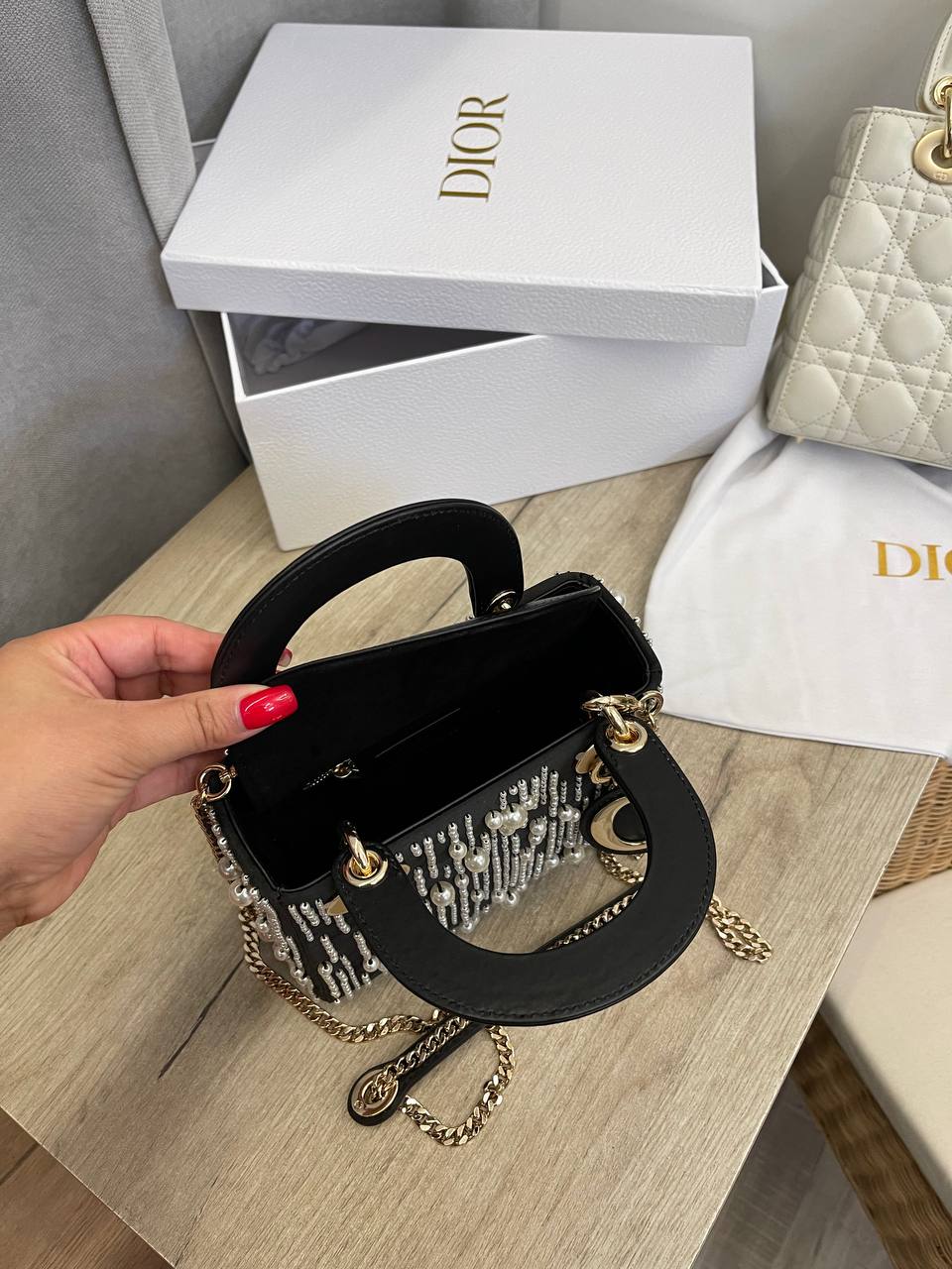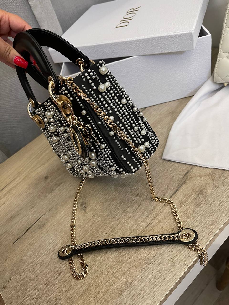 Сумка женская Christian Dior LUX-109359 - это воплощение элегантности и роскоши. Черный цвет, декорированный жемчужинами, придает изделию изысканный вид. Эта сумка идеальна для вечерних выходов, способная подчеркнуть индивидуальность своей обладательницы.