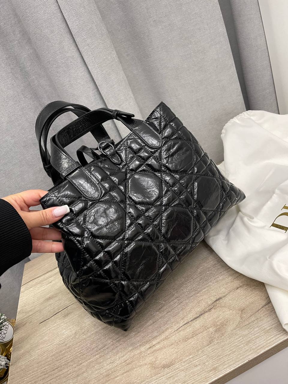 Сумка женская Christian Dior LUX-114015 – это элегантная сумка от известного бренда. Она выполнена в черном цвете, с уникальной стеганой текстурой, которая добавляет ей изысканности. Эта сумка идеально подойдет для различных ситуаций, от повседневных дел до вечерних мероприятий.
