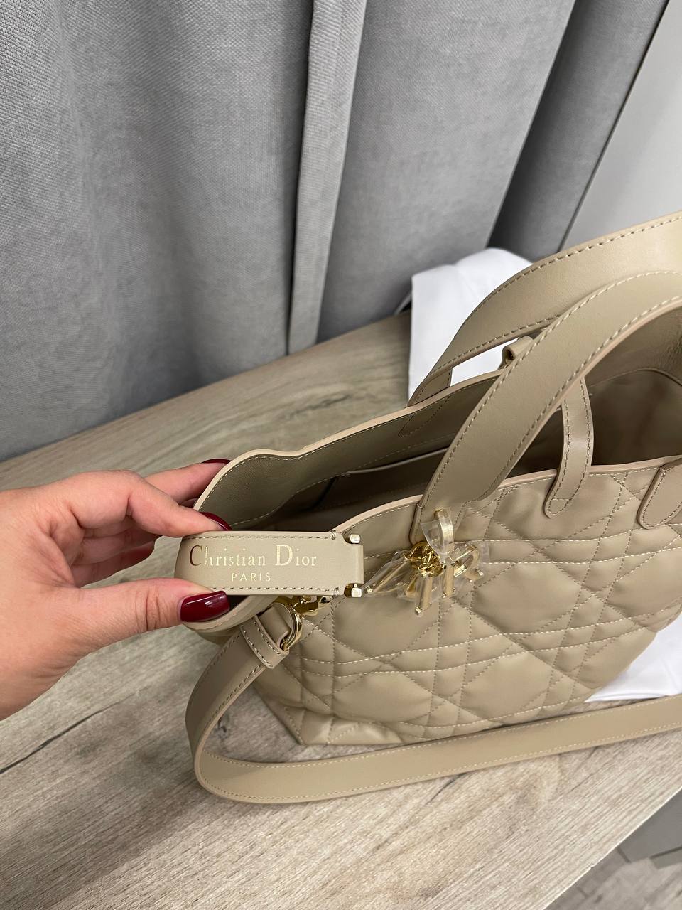 Сумка женская Christian Dior LUX-114819 выполнена в классическом стиле, сочетающем элегантность и функциональность. Нейтральный бежевый цвет и стеганый узор делают ее универсальным аксессуаром, подходящим для различных образов. Сумка оснащена короткими ручками и съемным плечевым ремнем, что обеспечивает удобство в использовании.
