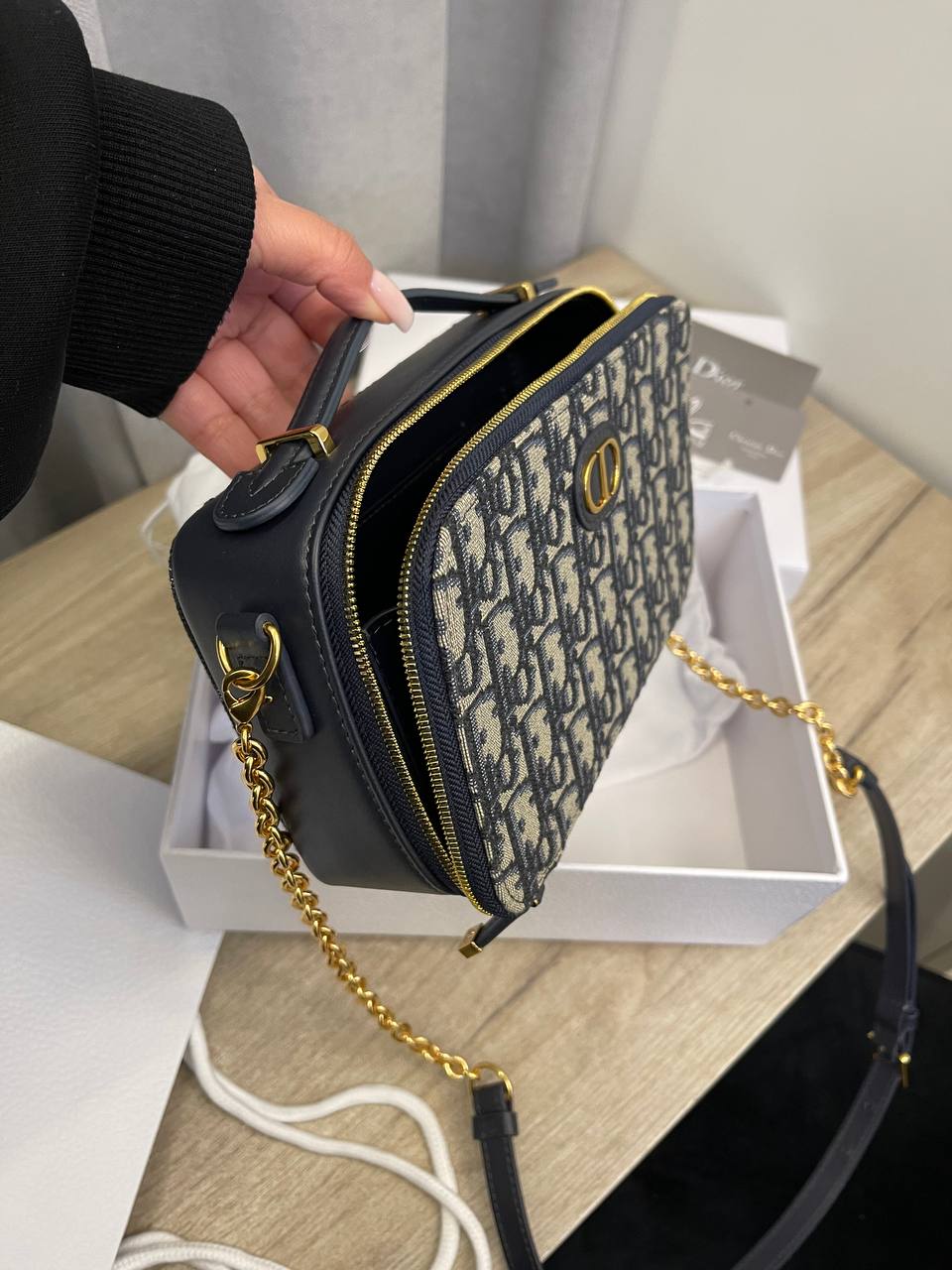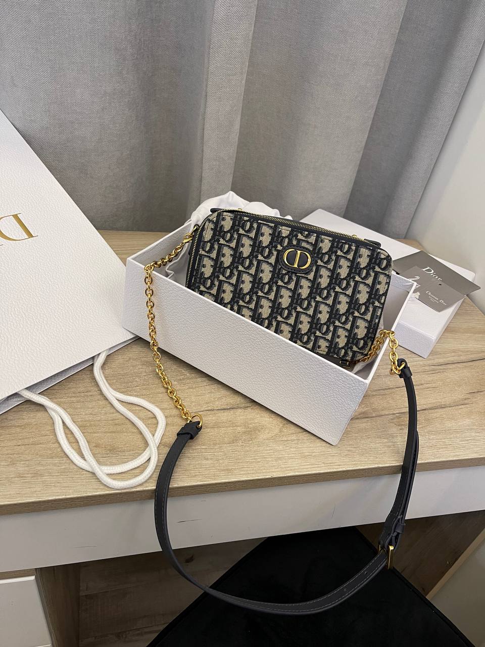 Сумка женская Christian Dior LUX-115687 представляет собой изысканный аксессуар в фирменном стиле бренда. Она выполнена в элегантном сочетании темно-синего и бежевого цветов с узнаваемым узором Dior. Эта сумка-клатч с длинной золотистой цепочкой идеально подойдет для повседневного использования и вечерних выходов.