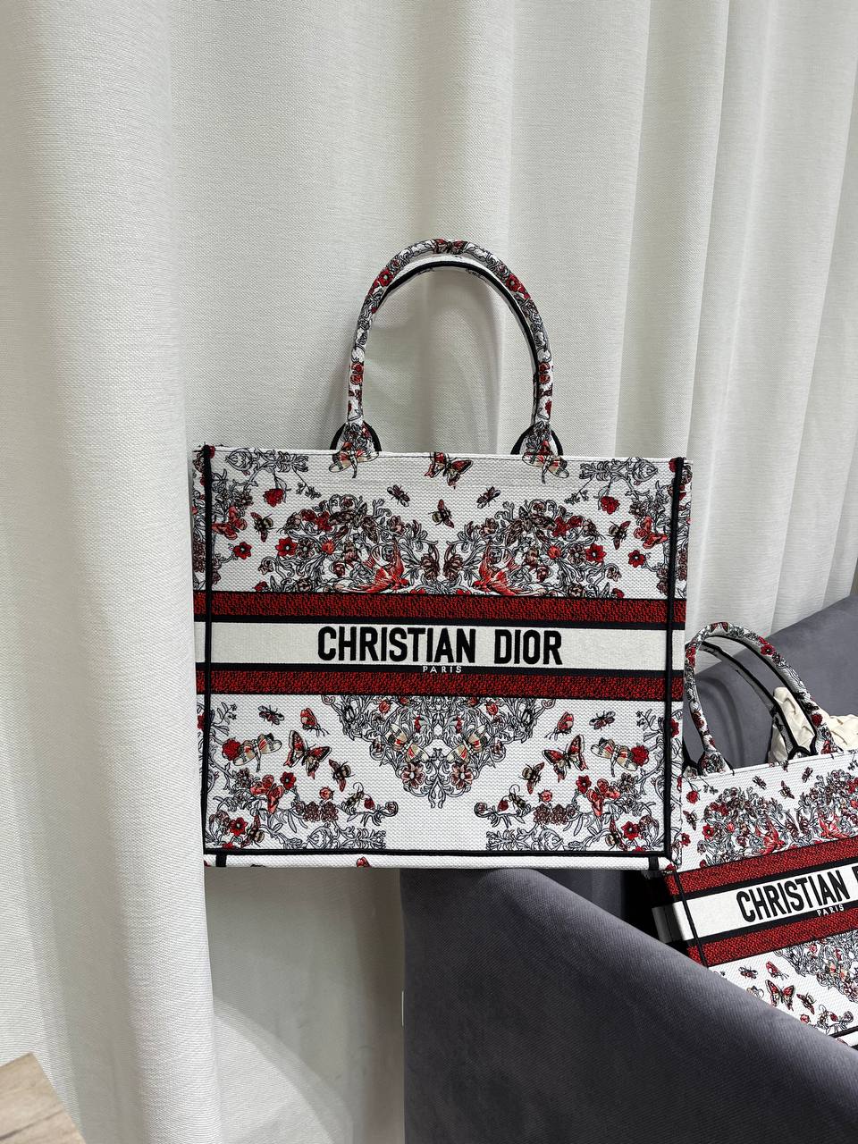 Сумка женская 42 см Christian Dior LUX-118764 - это элегантная сумка-тоут, выполненная в узнаваемом стиле бренда. Она сочетает в себе белый фон с ярким цветочным принтом и красными акцентами, создавая изысканный и запоминающийся образ. Сумка имеет узнаваемый дизайн, который подчеркивает ее премиальный статус.