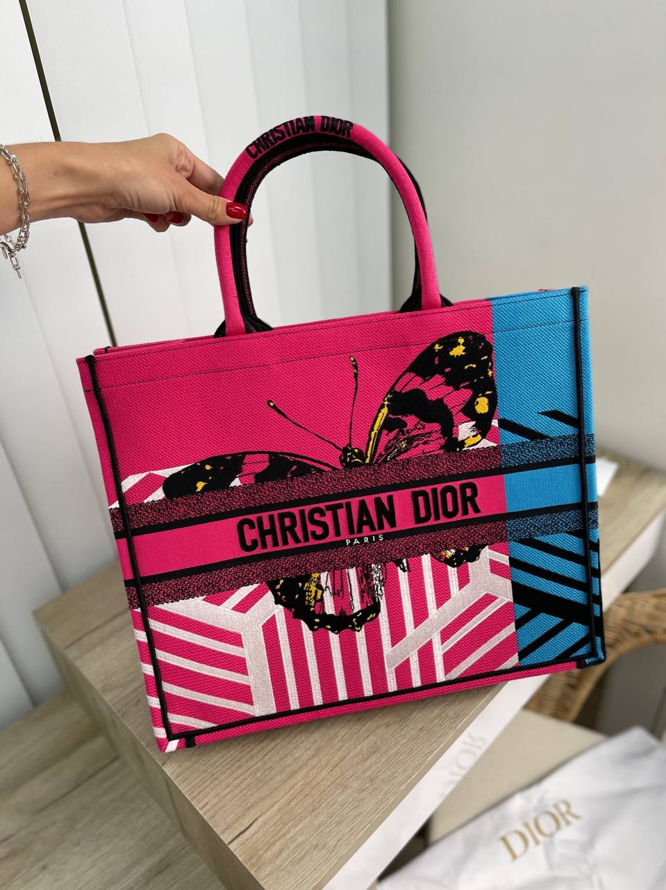 Стильная и яркая женская сумка Christian Dior LUX-66784 воплощает в себе роскошь и современный дизайн. Эта модель с принтом бабочек и контрастными полосами идеально подойдет для создания эффектных образов. Практичный размер и удобные ручки делают ее отличным выбором для повседневного использования и путешествий.
