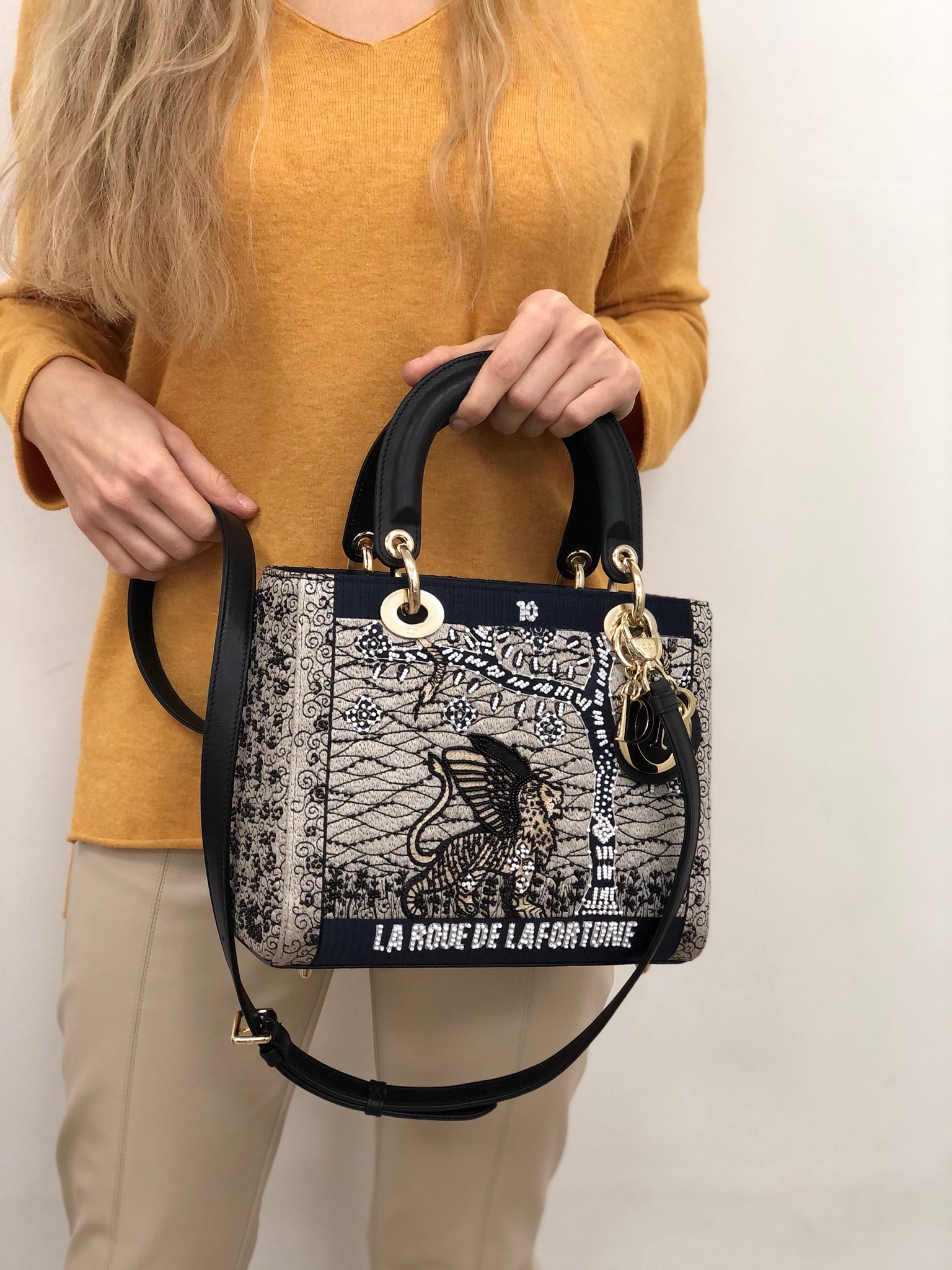 Christian Dior сумка женская LUX-26334 – это изысканный аксессуар, выполненный в элегантном стиле. Декоративный узор с изображением мифического существа и надписью "LA ROUE DE LA FORTUNE" придает сумке уникальность и шик. Модель идеально подойдет для создания стильных образов на каждый день и для особых случаев.