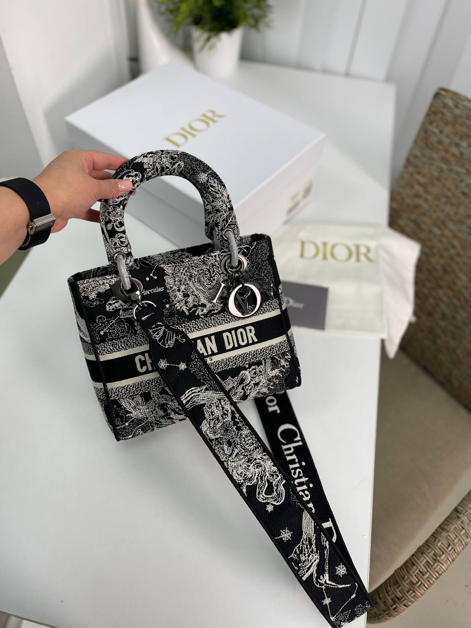 Сумка женская Lady D-Lite 24 см Christian Dior LUX-81112 - это элегантная сумка, сочетающая в себе классический стиль и современный дизайн. Сумка выполнена в черно-белой гамме с вышивкой, придающей ей изысканный вид. Предназначена для создания стильных образов и подчеркивания индивидуальности.