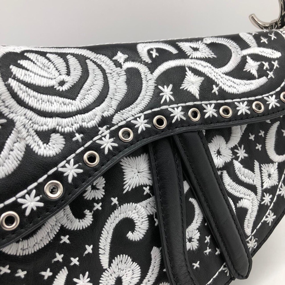 Christian Dior Сумка женская Saddle СЖ-632 — это стильная и элегантная сумка, выполненная в культовом дизайне Saddle. Аккуратная вышивка белыми нитками на черном фоне придает ей уникальный и запоминающийся вид. Благодаря своей форме и размеру, эта сумка идеально подходит для создания эффектных образов как на каждый день, так и для особых случаев.