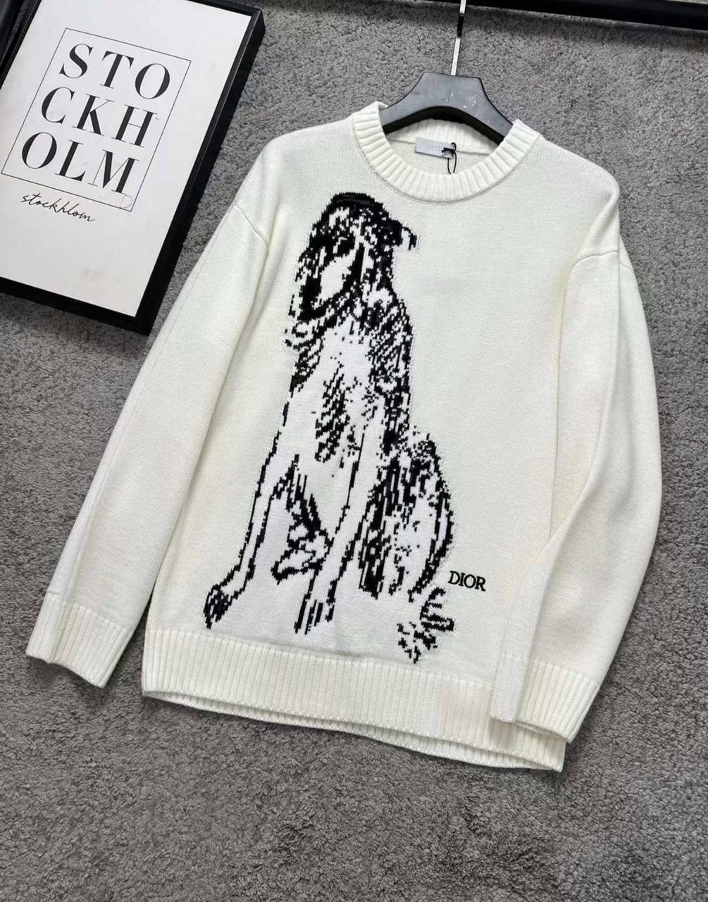 Свитер Christian Dior LUX-112113 – это стильный предмет гардероба от известного бренда. Свитер выполнен в классическом стиле с акцентом на минимализм и элегантность. Белый свитер украшен черным графическим принтом с изображением девушки.