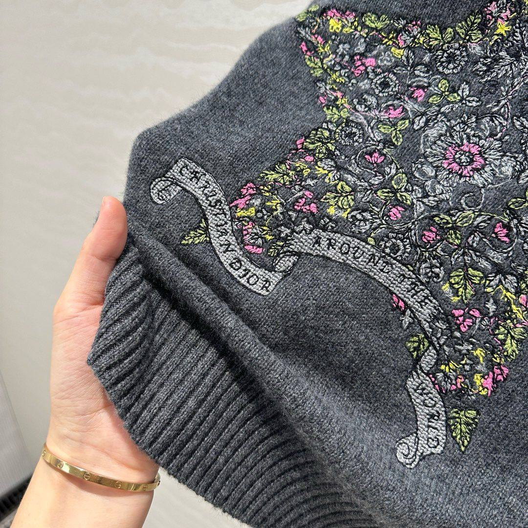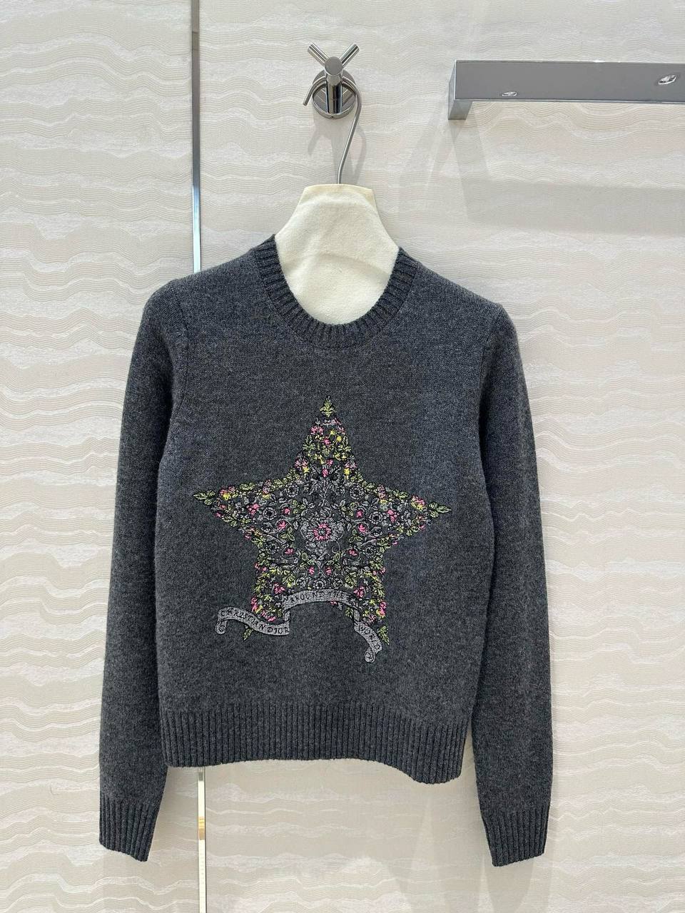 Свитер Christian Dior LUX-113265, представленный на изображении, — это стильный предмет гардероба от известного бренда. Свитер выполнен в классическом стиле, с круглым вырезом и длинными рукавами, что делает его универсальным для различных образов. Его серый цвет создает элегантный и сдержанный вид.