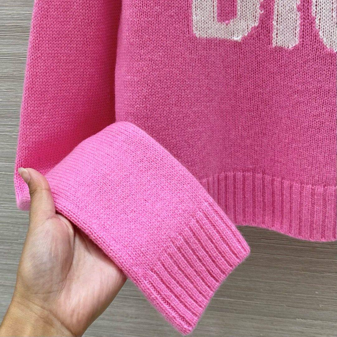 Свитер Christian Dior LUX-114676 — это предмет гардероба в повседневном стиле. Свитер выполнен в ярко-розовом цвете и украшен белыми надписями. Идеально подходит для создания ярких и стильных образов.