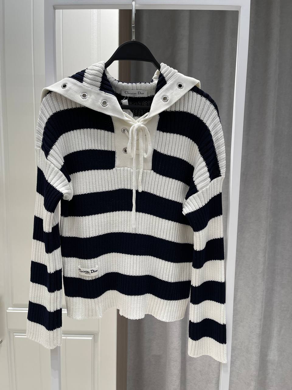 Christian Dior Sweater LUX-121364 – это стильный свитер в морском стиле, который сочетает в себе классику и современность. Этот свитер с капюшоном, выполненный в полоску, идеально подойдет для создания элегантных и непринужденных образов.