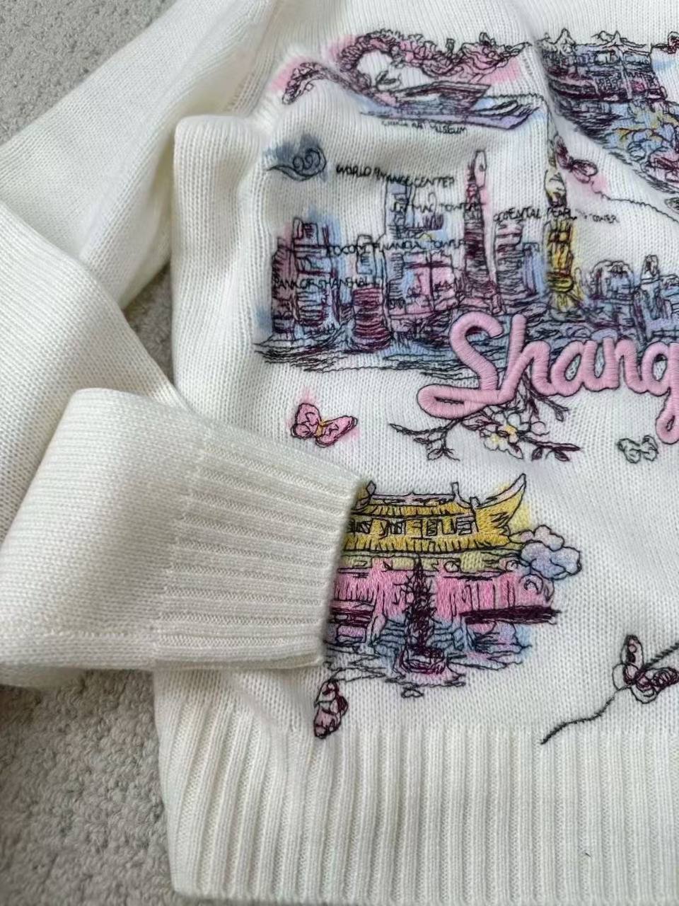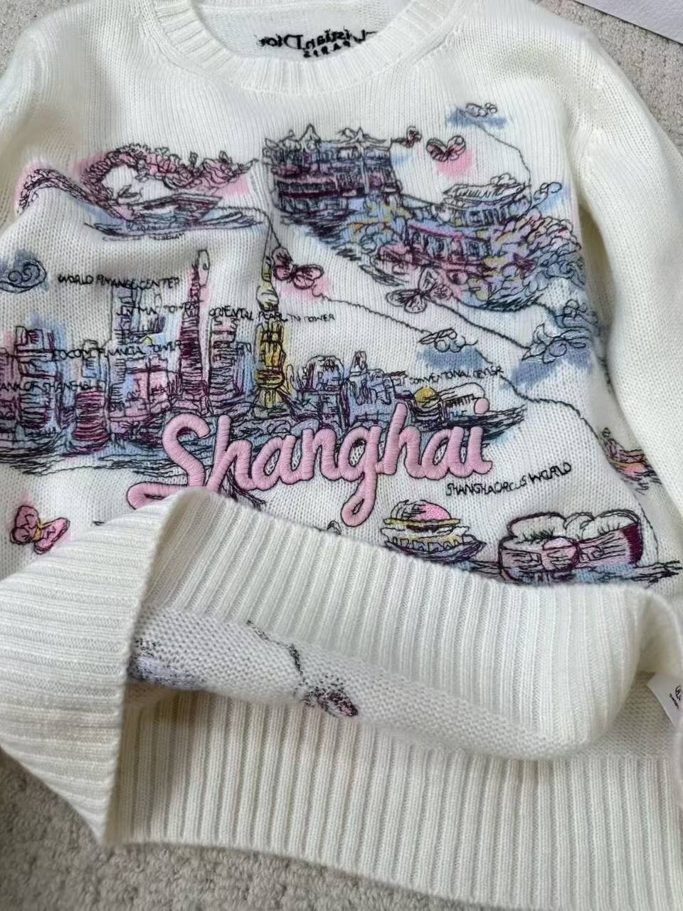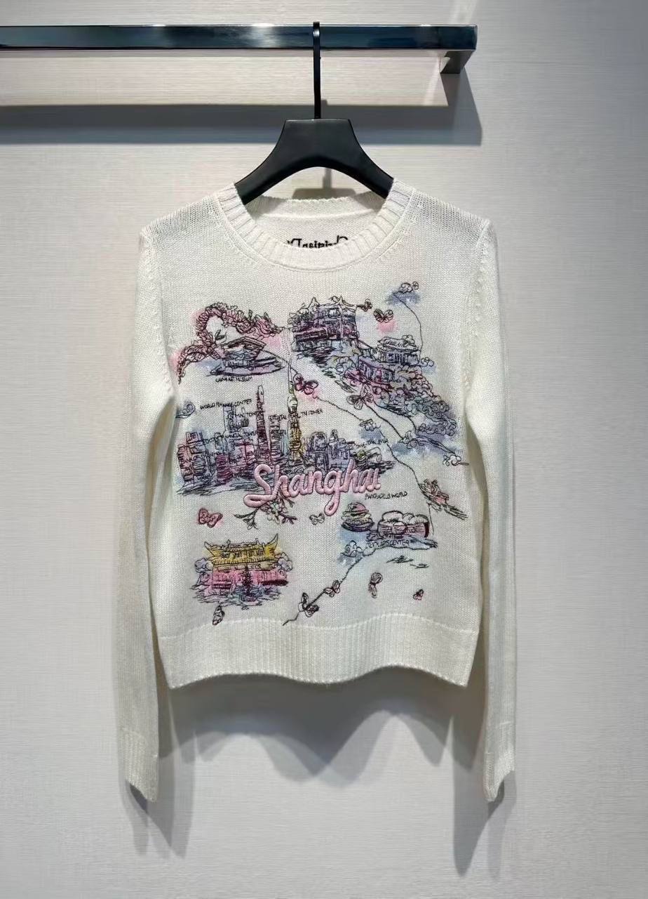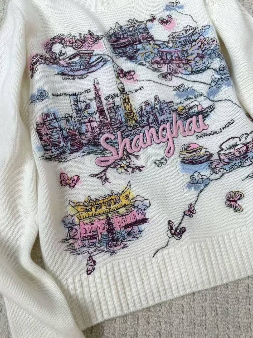 Свитер Christian Dior LUX-122641 — это стильный и привлекательный предмет гардероба. Он отличается оригинальным дизайном с изображением карты города Шанхай. Этот свитер станет ярким акцентом в вашем образе.