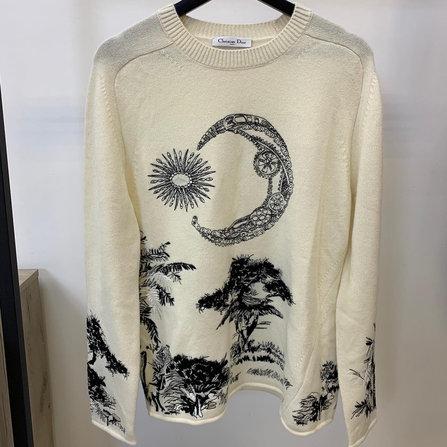 Этот женский свитер Christian Dior LUX-35372 отличается элегантным дизайном и высококачественным исполнением. Светлая основа контрастирует с изысканным черным принтом, изображающим луну, солнце и тропические мотивы. Свитер станет стильным дополнением как к повседневному, так и к более нарядному образу, добавляя ему роскоши и индивидуальности.