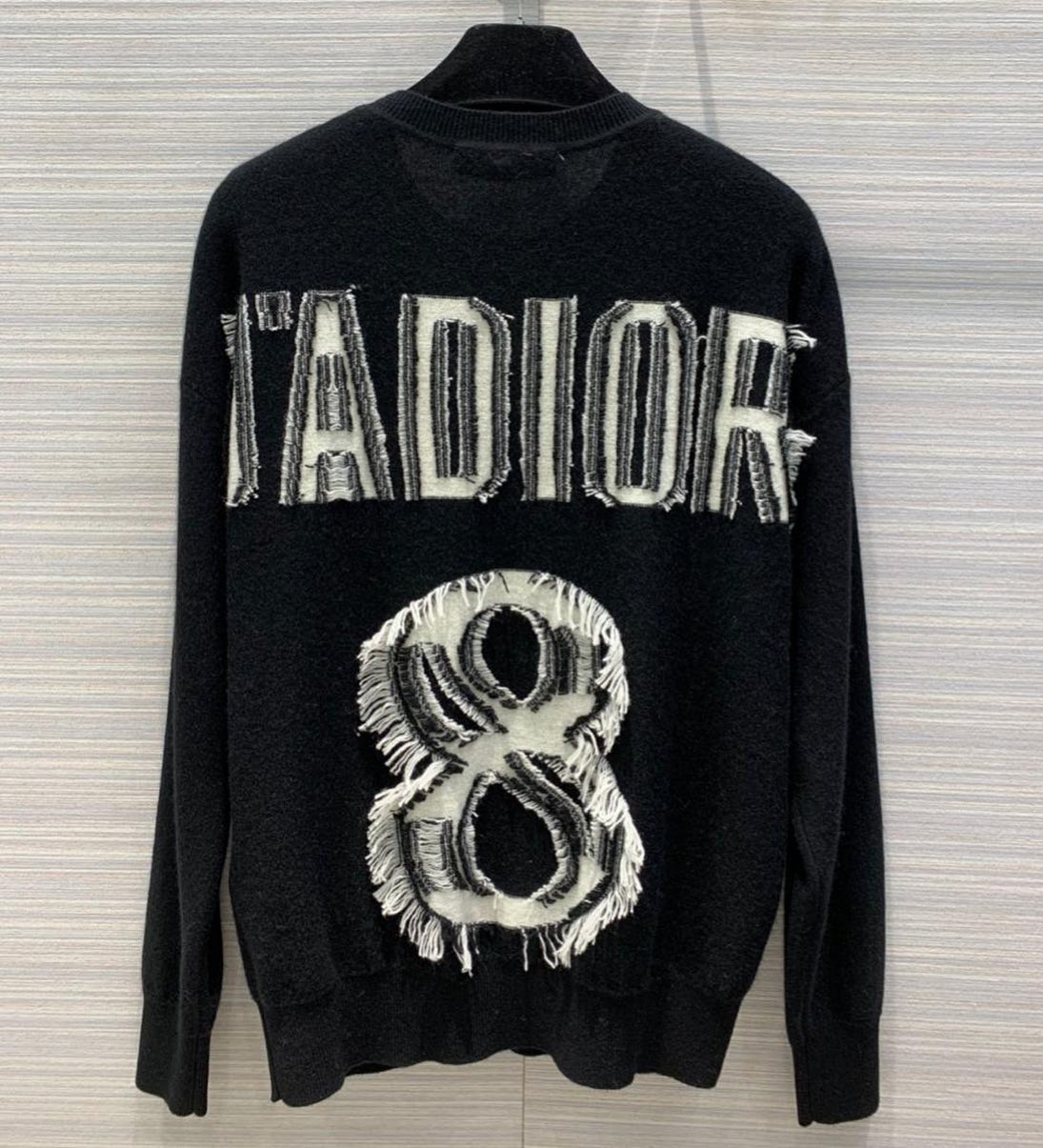 Свитер женский Christian Dior LUX-36076 выполнен в черном цвете, представляет собой стильный и современный элемент гардероба. Модель украшена объемным белым принтом с названием бренда "J`ADIOR" и цифрой "8", выполненными в технике аппликации с бахромой, что придает изделию оригинальный вид. Этот свитер идеально подойдет для создания эффектных повседневных и вечерних образов, подчеркивая индивидуальность.