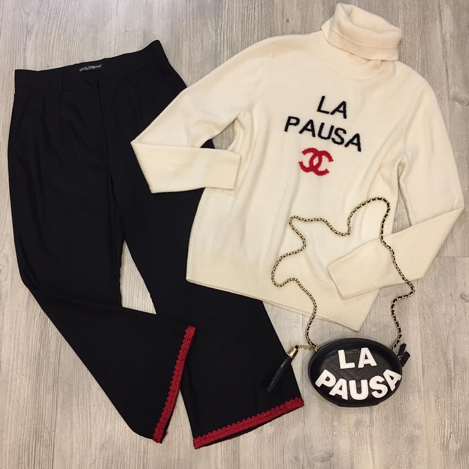 Женский свитер Christian Dior LUX-17101 — это стильный и элегантный элемент гардероба, сочетающий в себе классический дизайн и современные тренды. Свитер кремового цвета с высоким воротом украшен контрастной надписью "LA PAUSA" и узнаваемым логотипом бренда, выполненными из черных и красных элементов. Этот свитер идеально подойдет для создания изысканных образов как в повседневной жизни, так и для особых случаев, подчеркивая утонченный вкус владелицы.