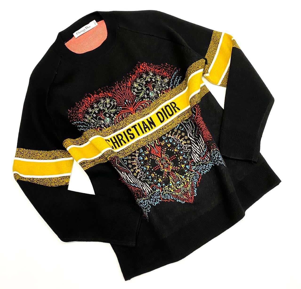 Этот женский свитер Christian Dior LUX-40900 представляет собой яркий и стильный элемент гардероба, выполненный в классическом черном цвете с эффектным красочным узором и узнаваемой полосой с логотипом бренда. Дизайн свитера сочетает в себе элегантность и современный стиль, что делает его универсальным дополнением к различным образам.