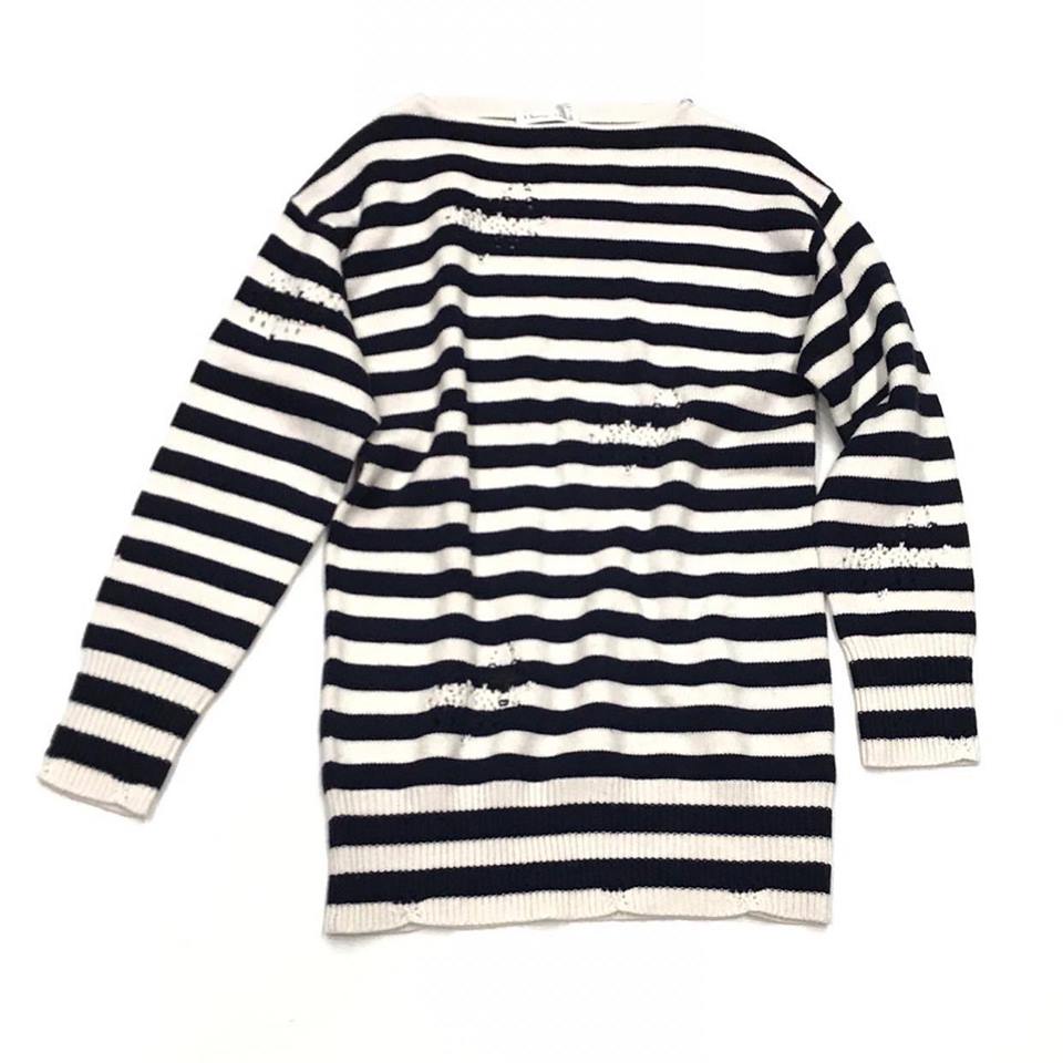 Женский свитер Christian Dior LUX-17326 в классическую черно-белую полоску — стильное дополнение к повседневному гардеробу. Свободный крой обеспечивает комфорт, а декоративные элементы добавляют оригинальности. Этот свитер идеально подходит для создания расслабленных, но элегантных образов.