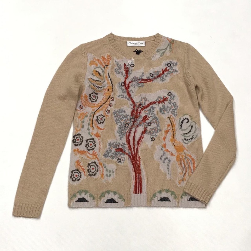 Этот изысканный свитер женский Christian Dior LUX-17605 представляет собой сочетание классического стиля и уникального дизайна. Яркий, детализированный принт с изображением дерева и экзотических птиц на бежевом фоне придает изделию особый шарм. Круглый вырез и длинные рукава делают его универсальным элементом гардероба.