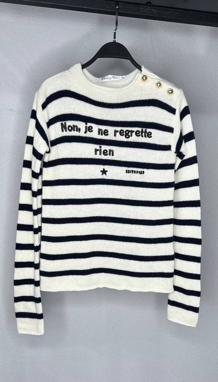 Свитер женский Christian Dior LUX-98534 – это стильный предмет гардероба, который сочетает в себе элегантность и комфорт. Свитер выполнен в классическом полосатом дизайне, с надписью на французском языке. Этот свитер идеально подходит для создания повседневных и элегантных образов.