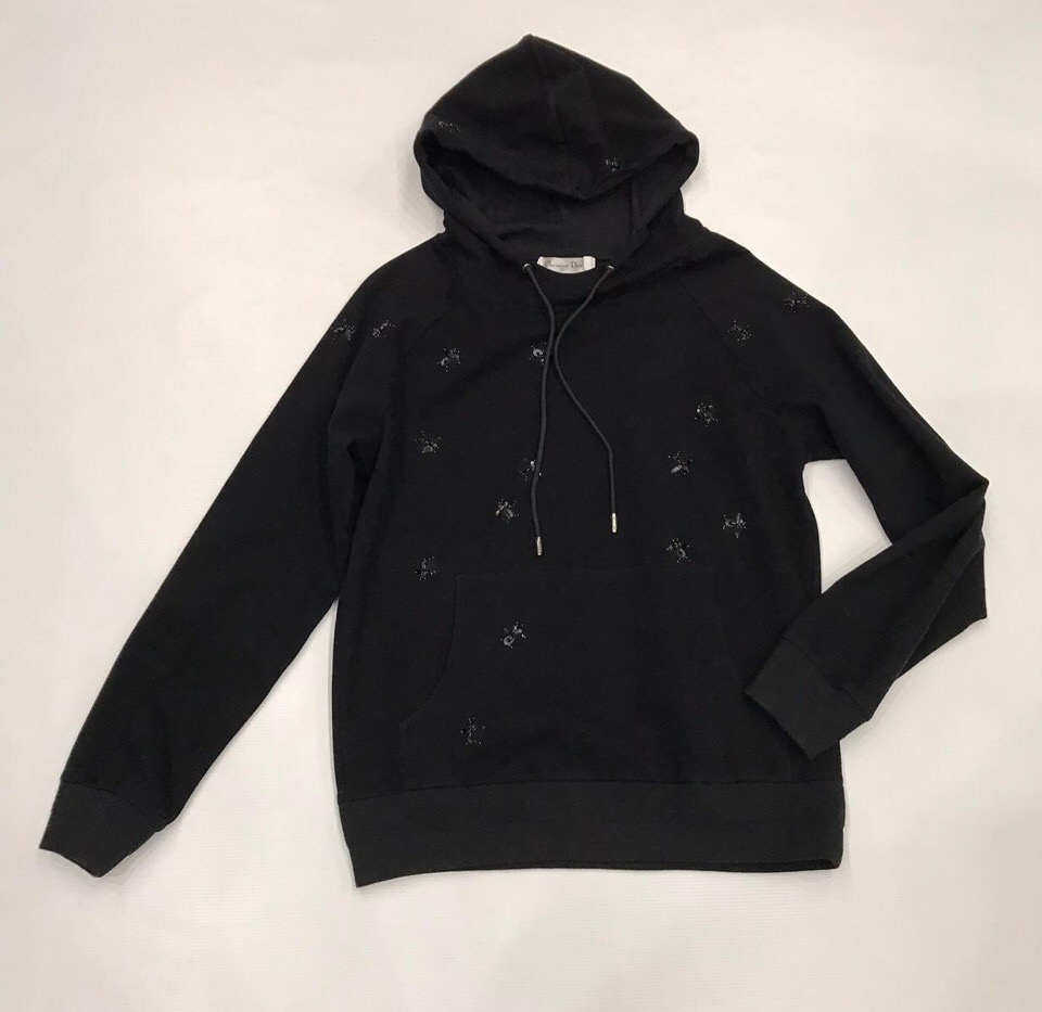 Стильная черная толстовка Christian Dior ОДЖ-385 с капюшоном и декоративными элементами в виде пчел, выполненная в стиле casual. Эта модель идеально подойдет для создания комфортных и эффектных образов на каждый день.