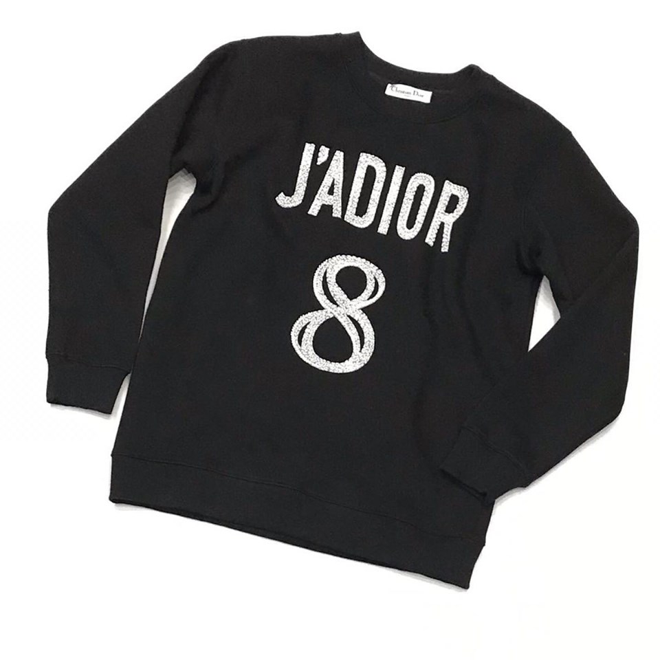 Толстовка женская Christian Dior LUX-22283 – это стильная и модная модель, выполненная в спортивном стиле. На черном фоне толстовки расположен крупный белый принт "J`ADIOR" и цифра "8", украшенные блестящими элементами, что придает изделию особый шарм и элегантность.