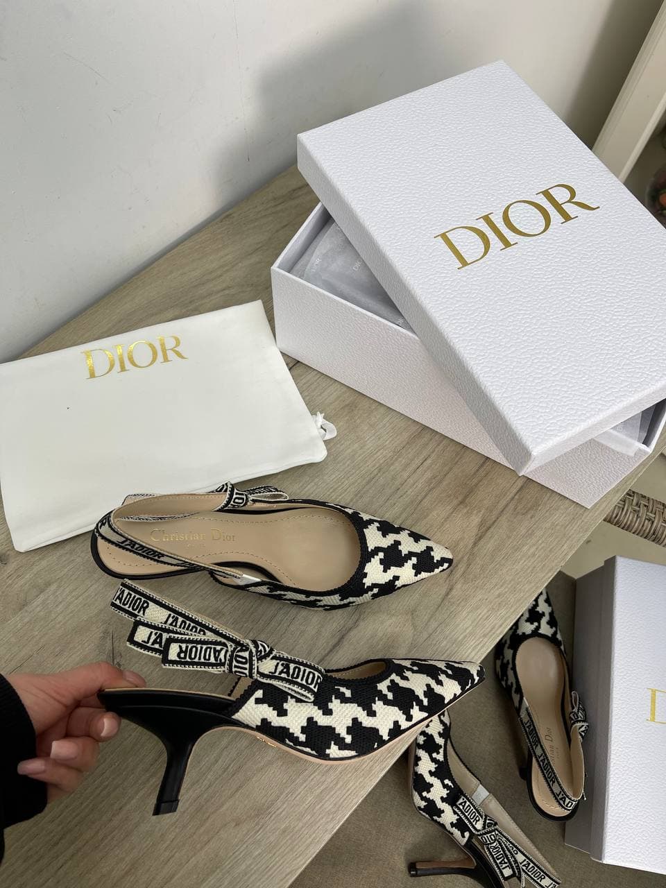Туфли Christian Dior LUX-62840 представляют собой элегантную модель с изысканным принтом "гусиная лапка" в черно-белой гамме. Остроконечный носок и изящная шпилька подчеркивают женственность образа. Ремешок с фирменной надписью "J`ADIOR" добавляет узнаваемости и стильный акцент. Эта пара идеально дополнит как повседневные, так и вечерние наряды.