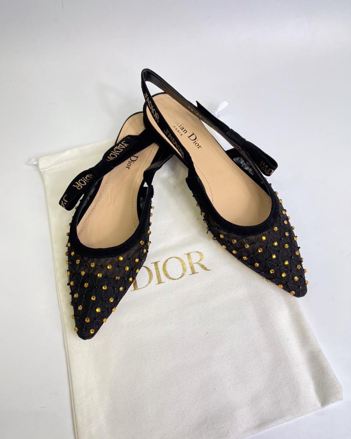 Туфли Christian Dior LUX-44285 представляют собой изысканное сочетание элегантности и модного дизайна. Эти женские туфли на низком каблуке выполнены в черном цвете, с оригинальным декором из золотистых бусин, что придает им особое очарование. Модель идеально подходит для создания утонченных вечерних и торжественных образов.