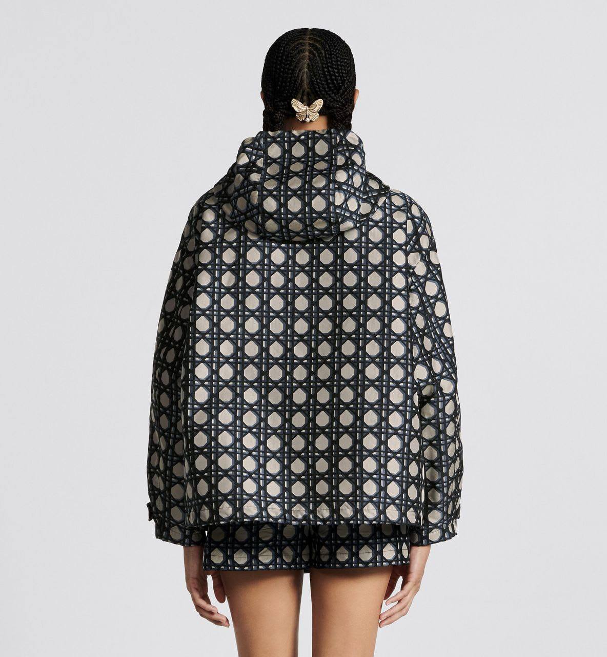 Ветровка Christian Dior LUX-105845 - это стильная и практичная одежда для повседневного использования. Ветровка выполнена в оригинальном геометрическом узоре, сочетающем в себе чёрный, молочный и синий цвета. Она представляет собой универсальный элемент гардероба, который можно сочетать с различными стилями одежды.