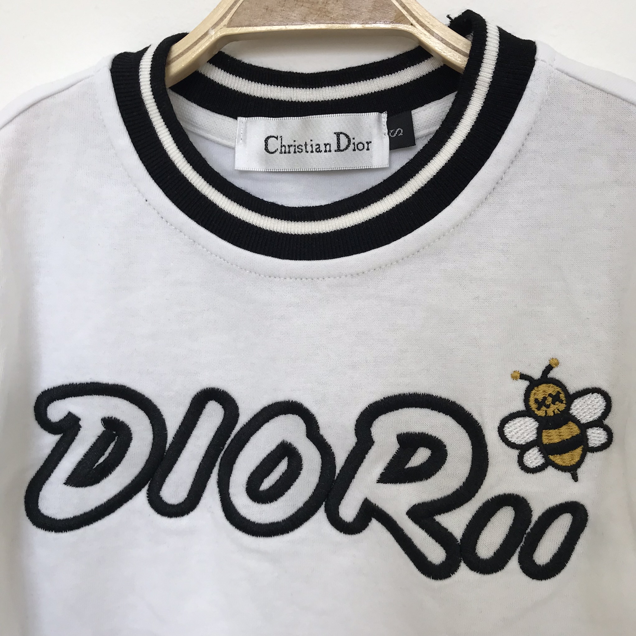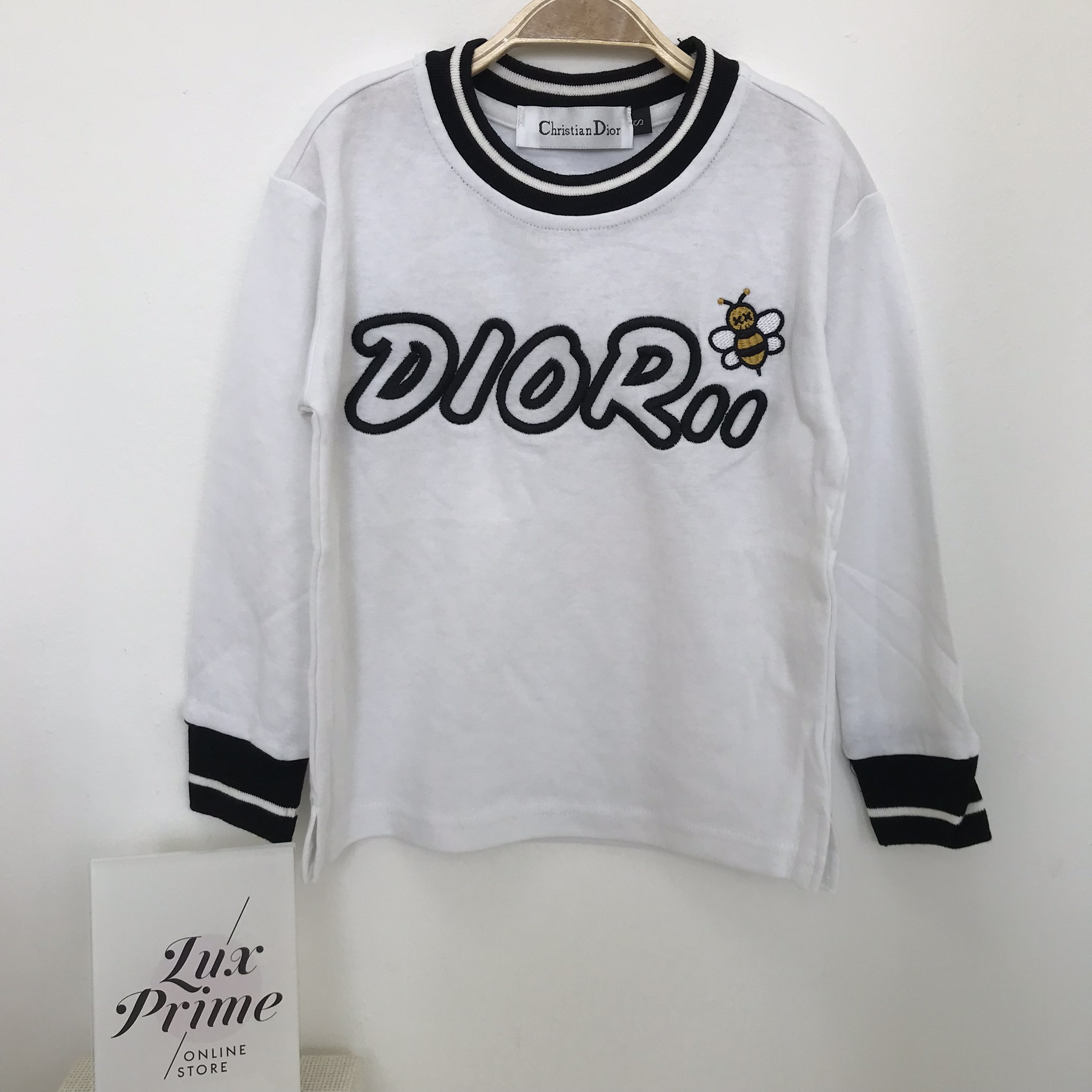 Водолазка Christian Dior LUX-18725 представляет собой стильный предмет гардероба, выполненный в современном дизайне. Она сочетает в себе элегантность бренда Christian Dior с игривым акцентом в виде вышитой пчелы и объемной надписи "DIOR". Классический белый цвет с черными полосами на воротнике и манжетах придает водолазке спортивный, но в то же время изысканный вид. Этот элемент одежды идеально подходит для создания разнообразных образов, от повседневных до более нарядных.