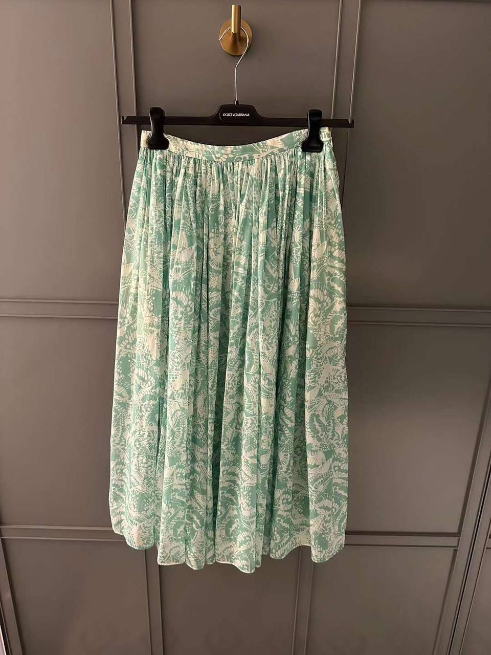 Юбка Christian Dior LUX-103288 - это элегантная юбка миди с цветочным принтом. Юбка выполнена в приятных мятных тонах с белым узором. Она подойдет для создания как повседневных, так и более нарядных образов.
