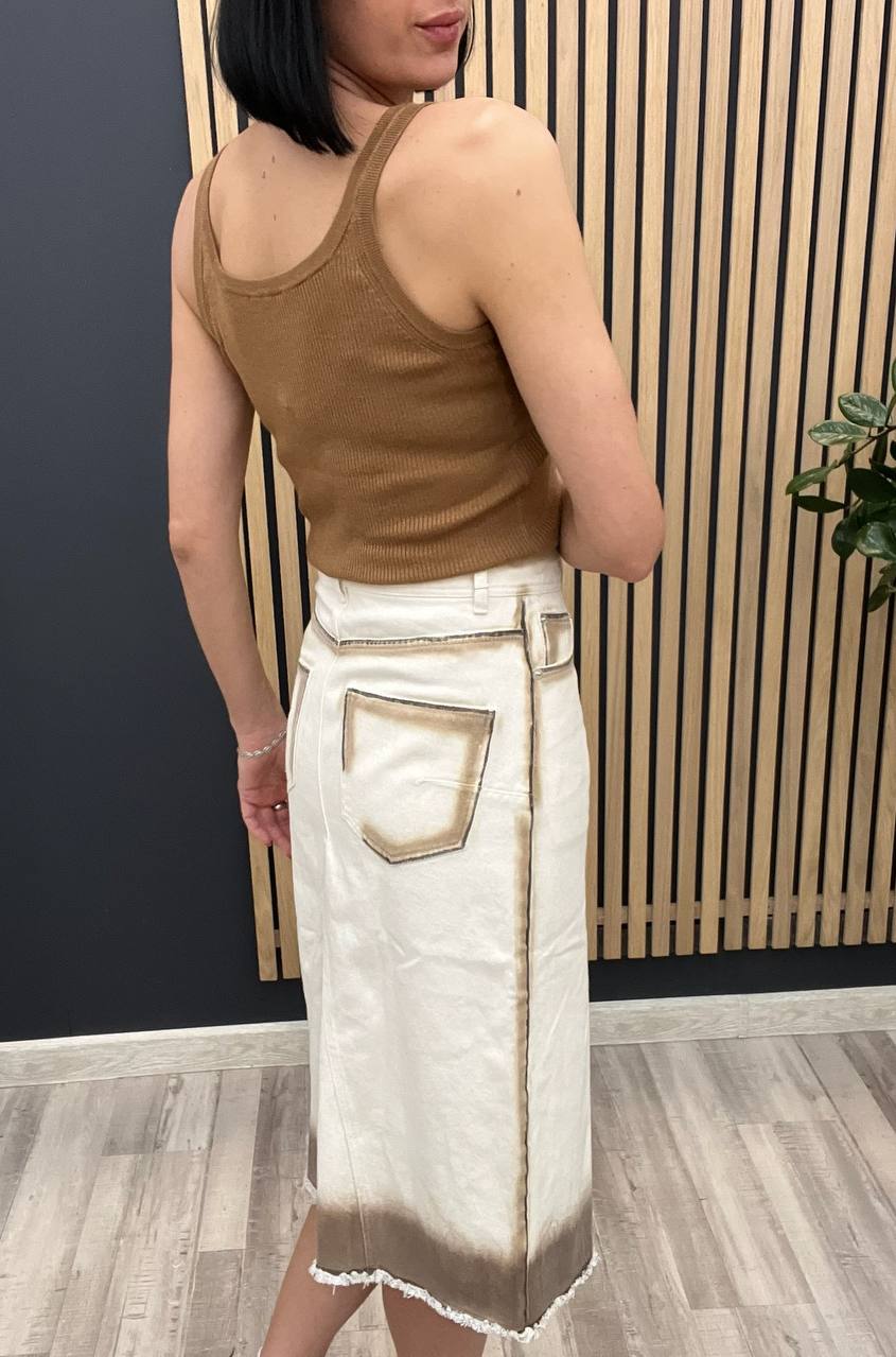 Юбка Christian Dior LUX-104584 - это стильная джинсовая юбка миди кремового цвета с эффектом градиента. Дизайн юбки подчеркивает индивидуальность и современный взгляд на классику. Юбка подойдет для создания повседневных и вечерних образов, сочетая в себе элегантность и комфорт.
