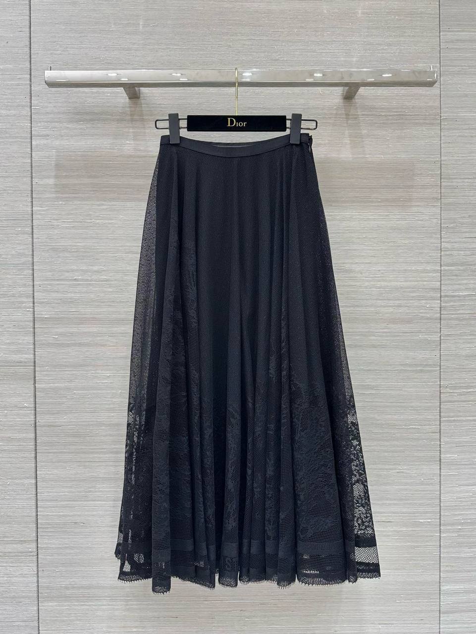 Юбка Christian Dior LUX-113134 - элегантный предмет гардероба, выполненный в классическом стиле. Юбка черного цвета, имеет полупрозрачную структуру с кружевным узором, что придает ей изысканный вид. Идеально подходит для создания как повседневных, так и вечерних образов.